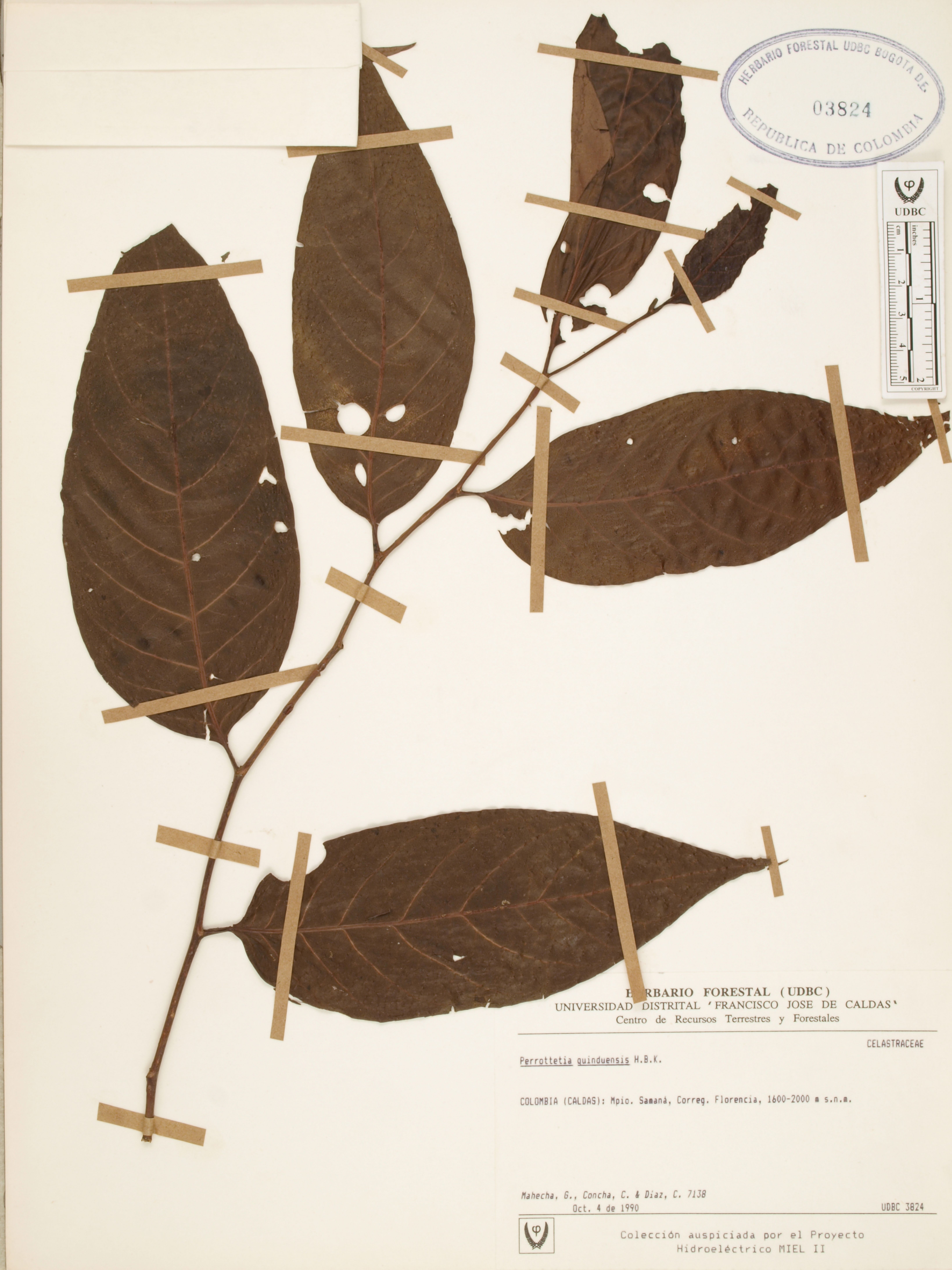 Fotografía del ejemplar Mahecha, G. 7138, determinado como Perrottetia quinduensis