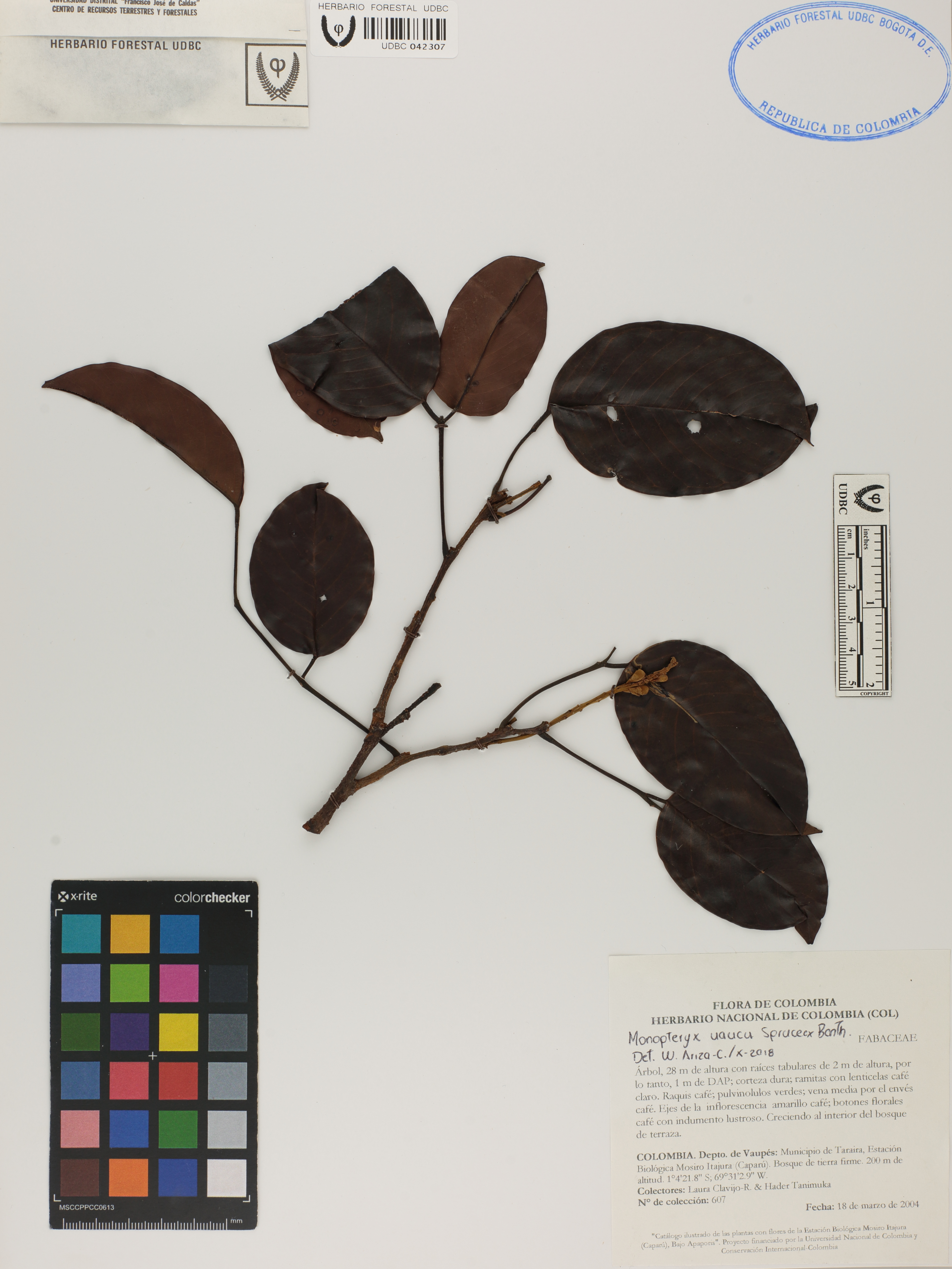 Fotografía del ejemplar Clavijo-R., L. 607, determinado como Monopteryx uaucu en el año 2018