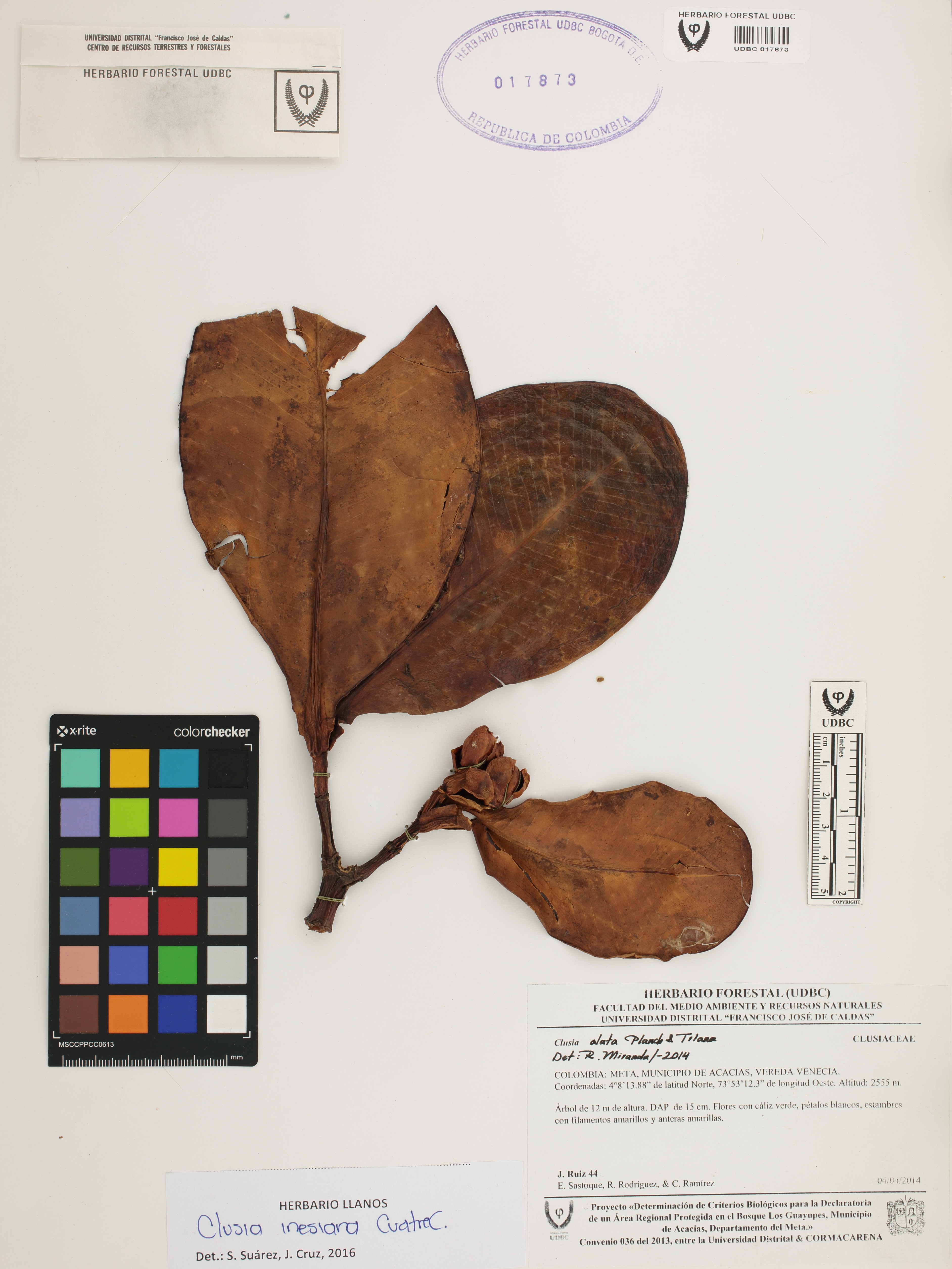 Fotografía del ejemplar Ruiz, J. 44, determinado como Clusia inesiana en el año 2016
