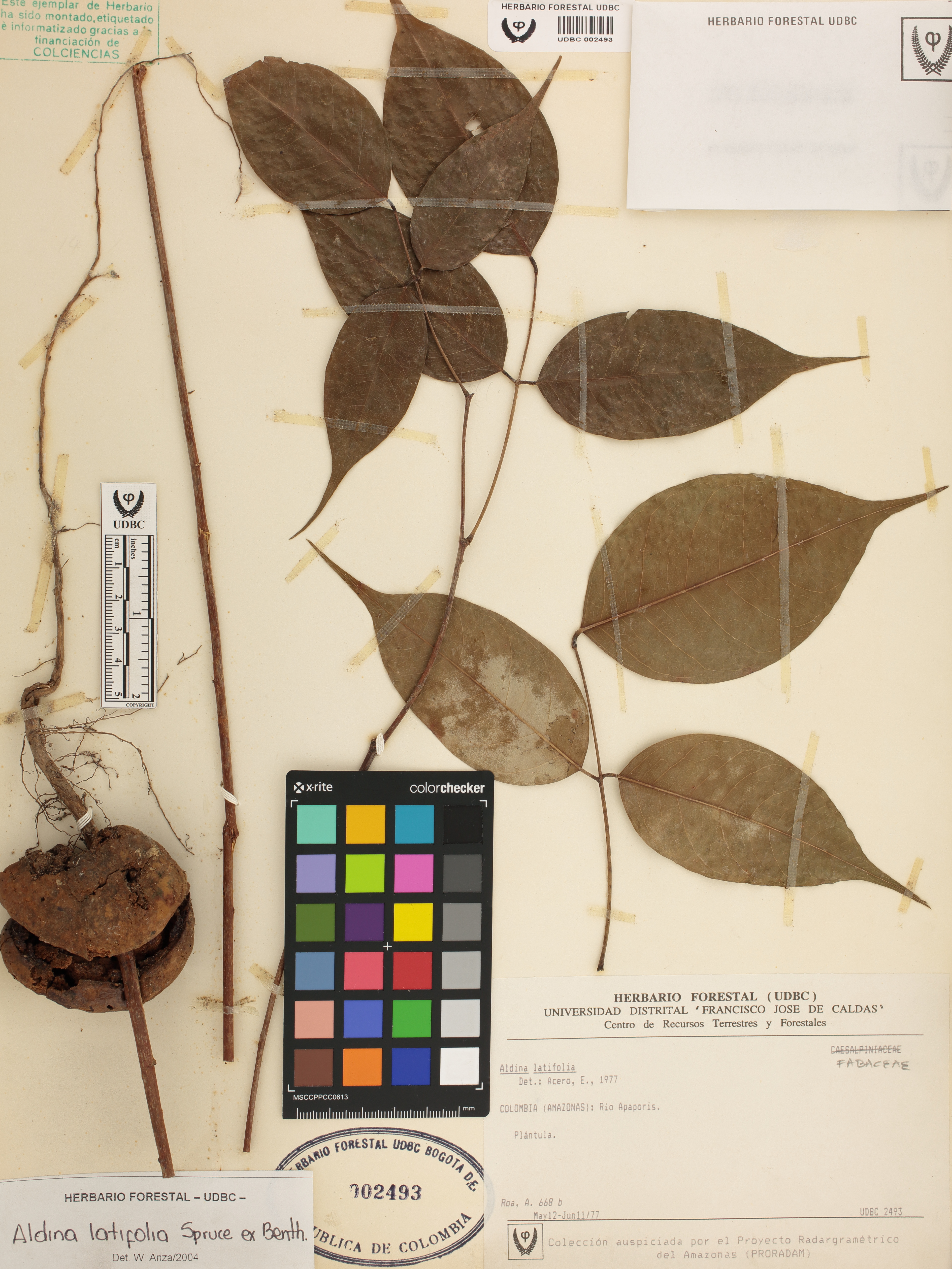 Fotografía del ejemplar Roa, A. 668b, determinado como Aldina latifolia en el año 2004