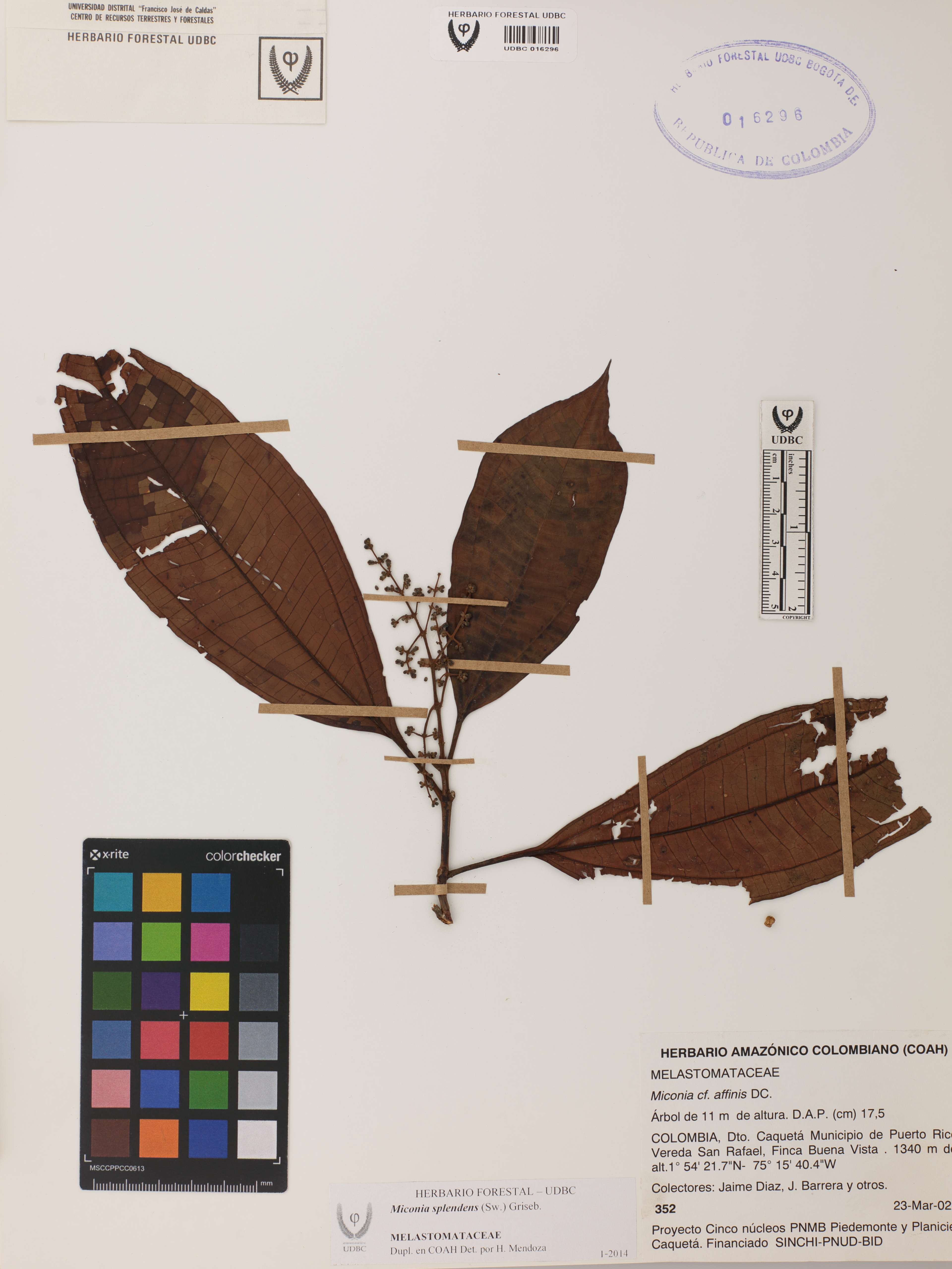 Fotografía del ejemplar Díaz, J. 352, determinado como Miconia splendens en el año 2014