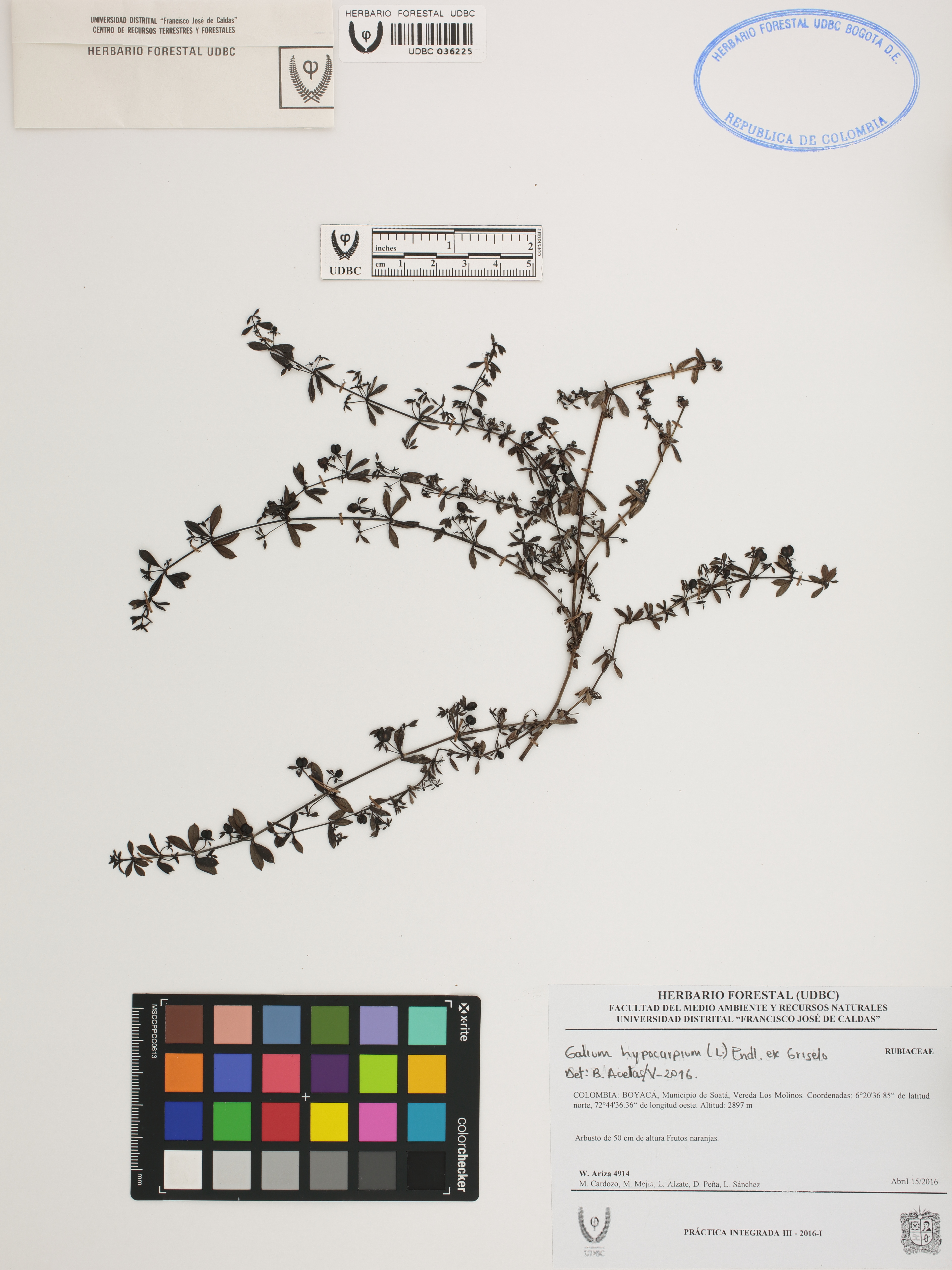 Fotografía del ejemplar Ariza, W. 4914, determinado como Galium hypocarpium en el año 2016