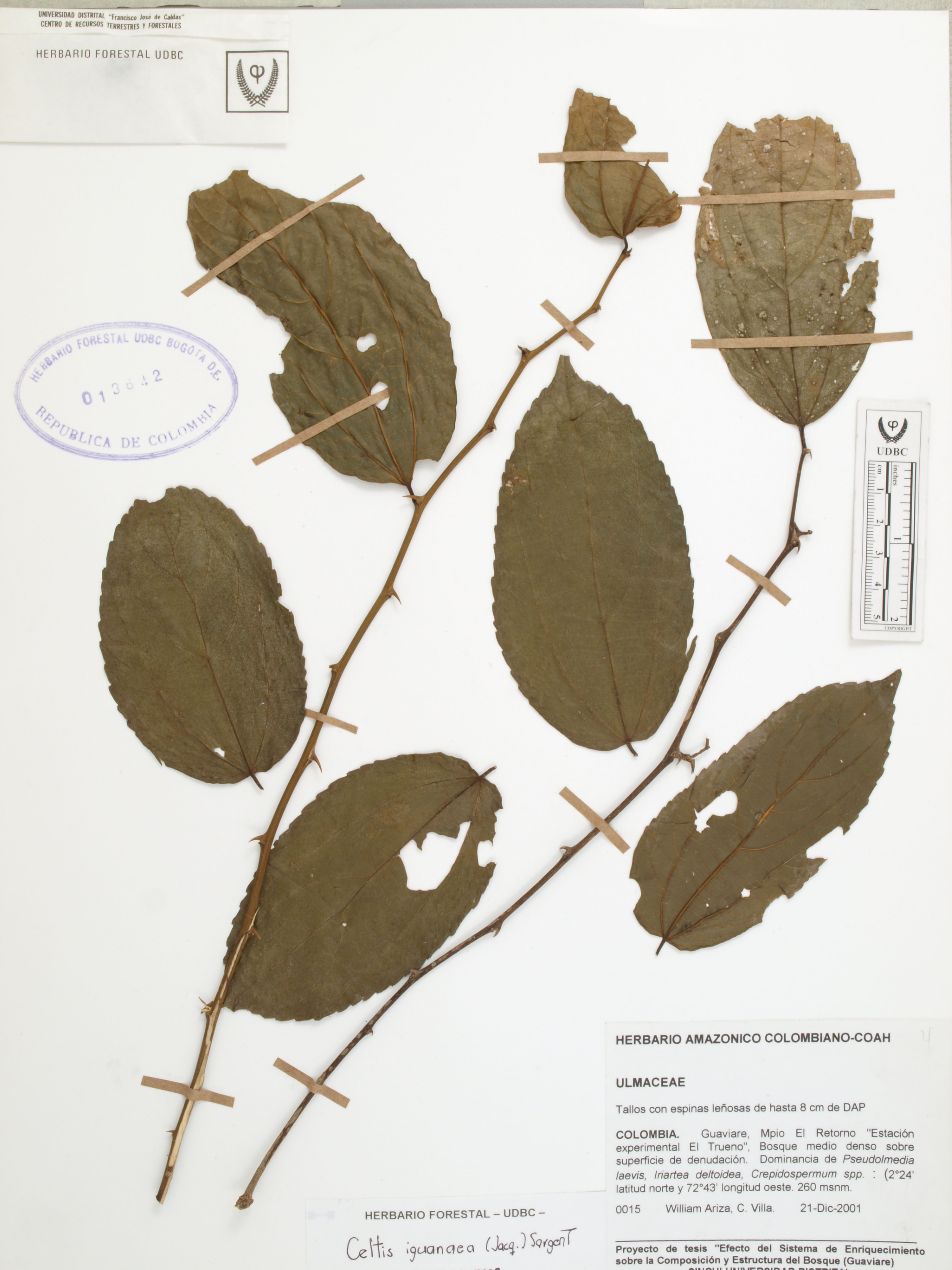 Fotografía del ejemplar Ariza, W. 15, determinado como Celtis iguanaea en el año 2002