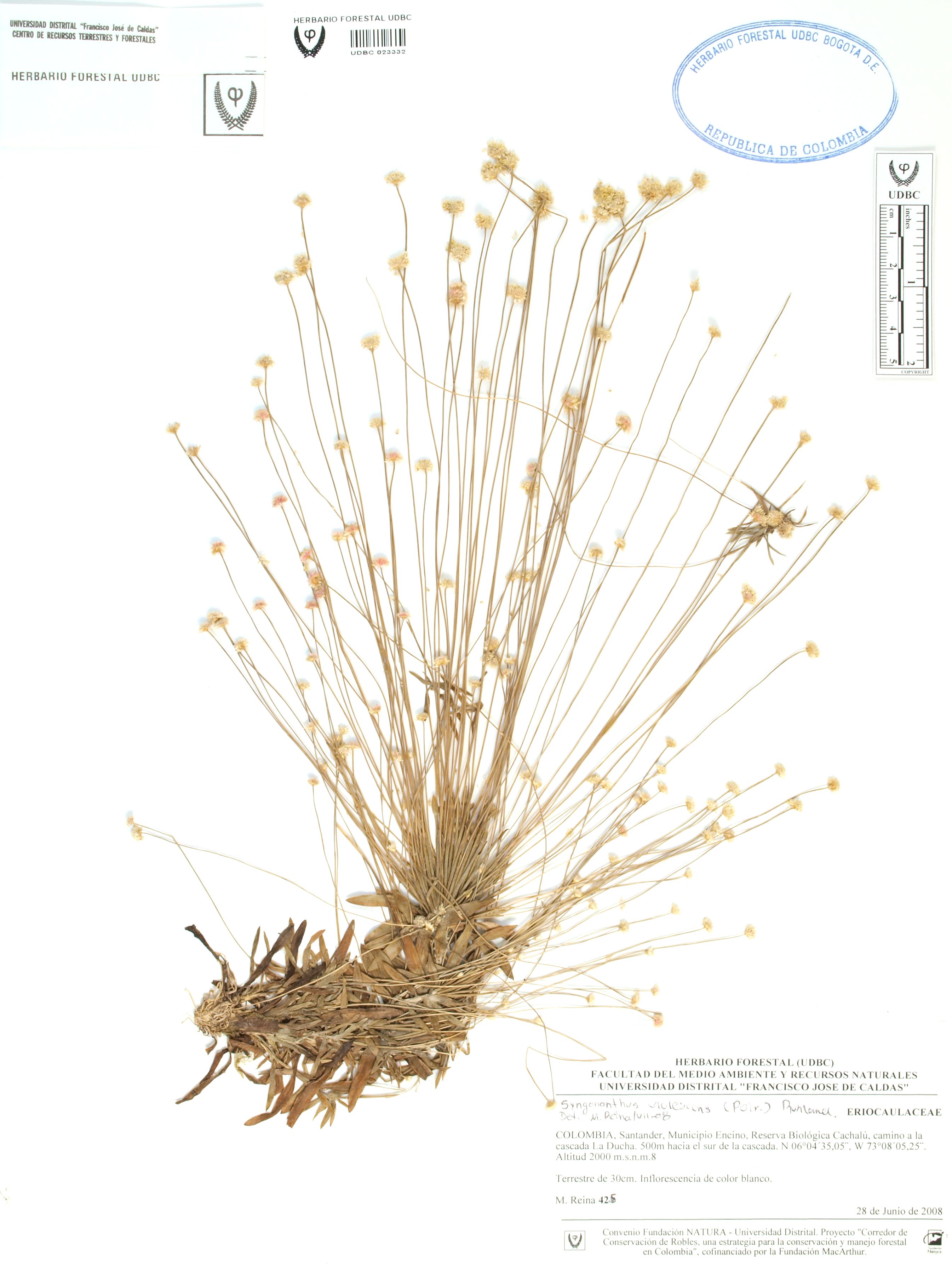 Fotografía del ejemplar Reina, M. 425, determinado como Syngonanthus caulescens en el año 2008