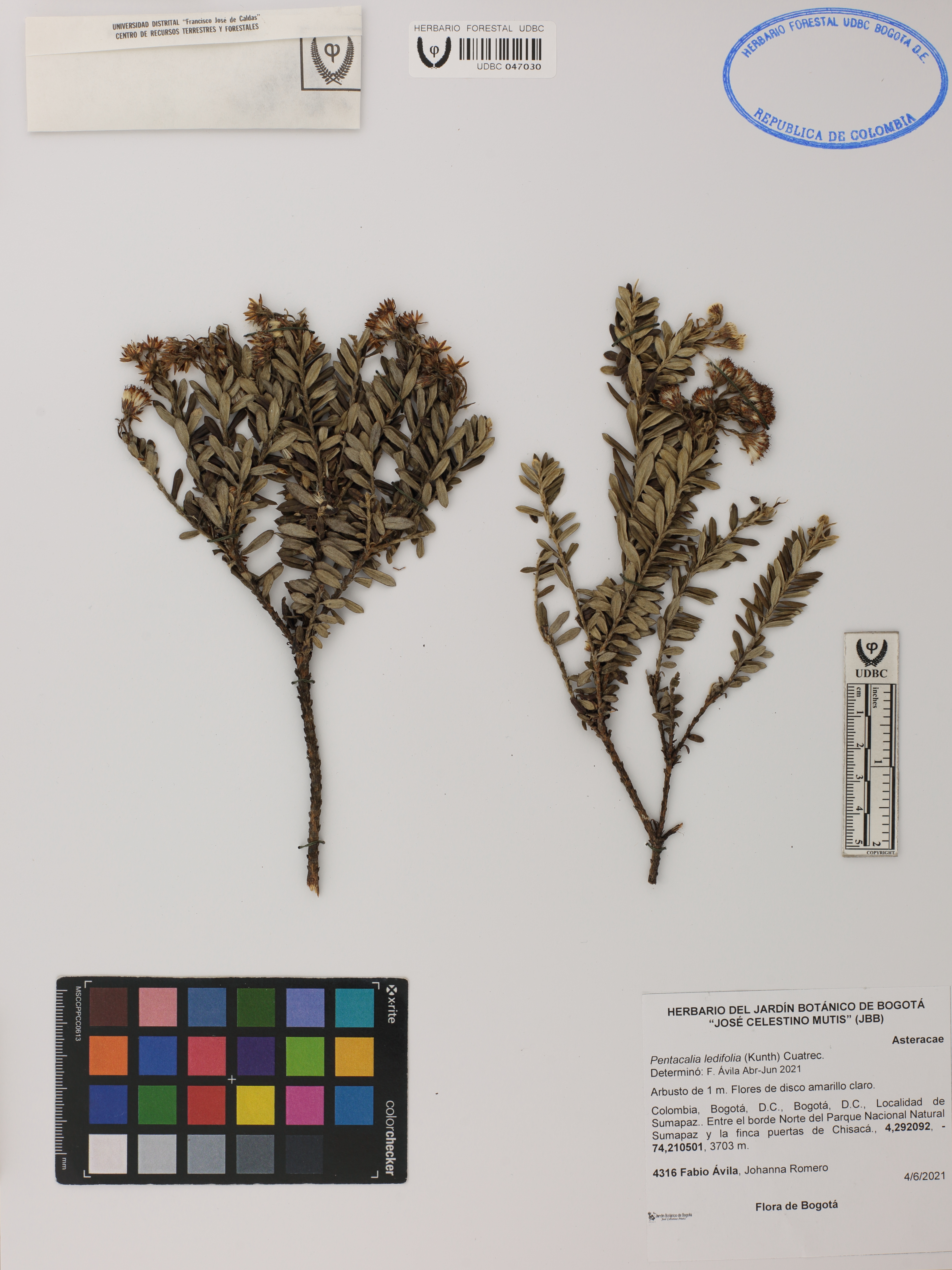 Fotografía del ejemplar Ávila, F. 4316, determinado como Pentacalia ledifolia en el año 2021