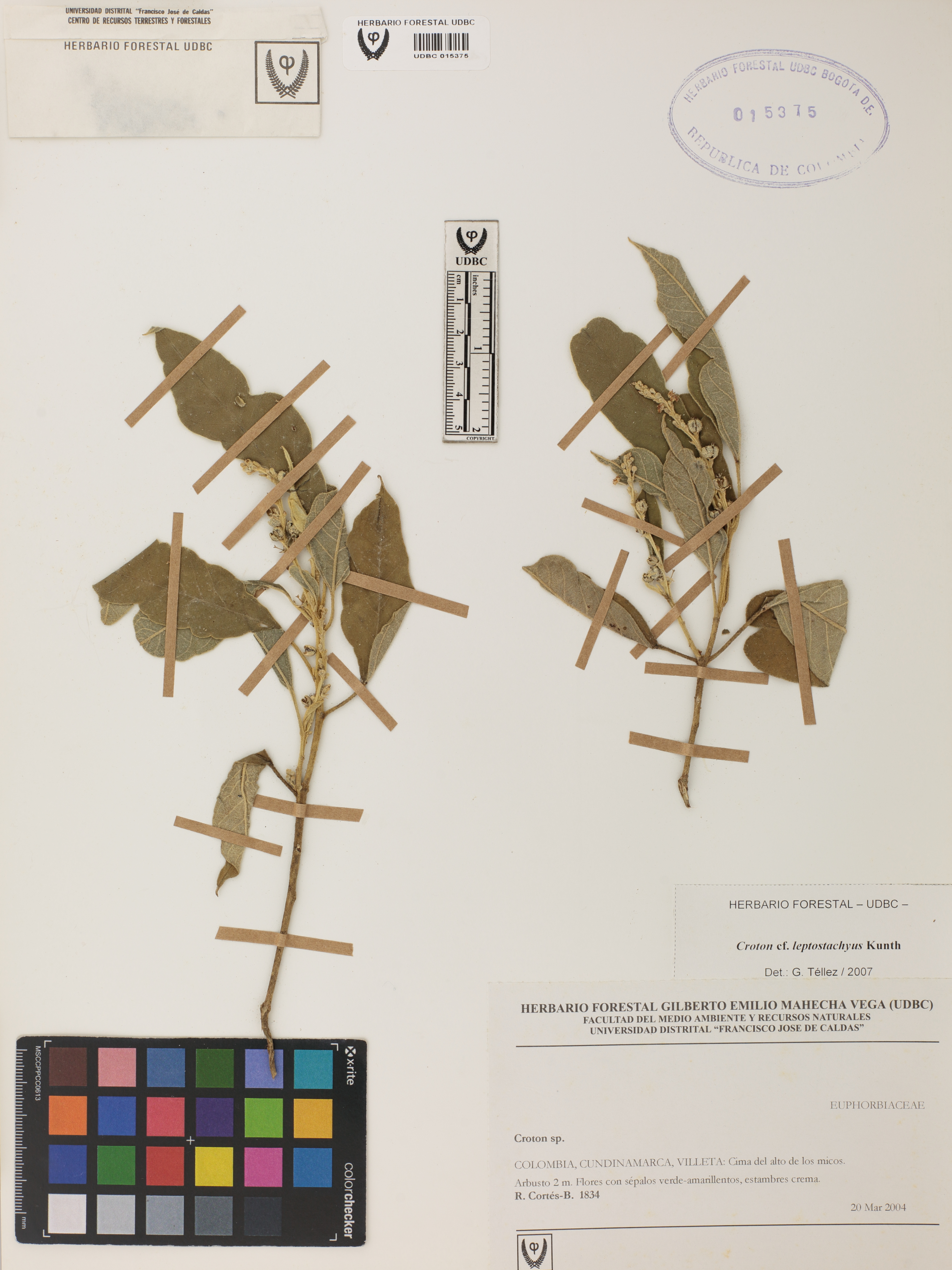 Fotografía del ejemplar Cortés-B., R. 1834, determinado como Croton leptostachyus en el año 2007