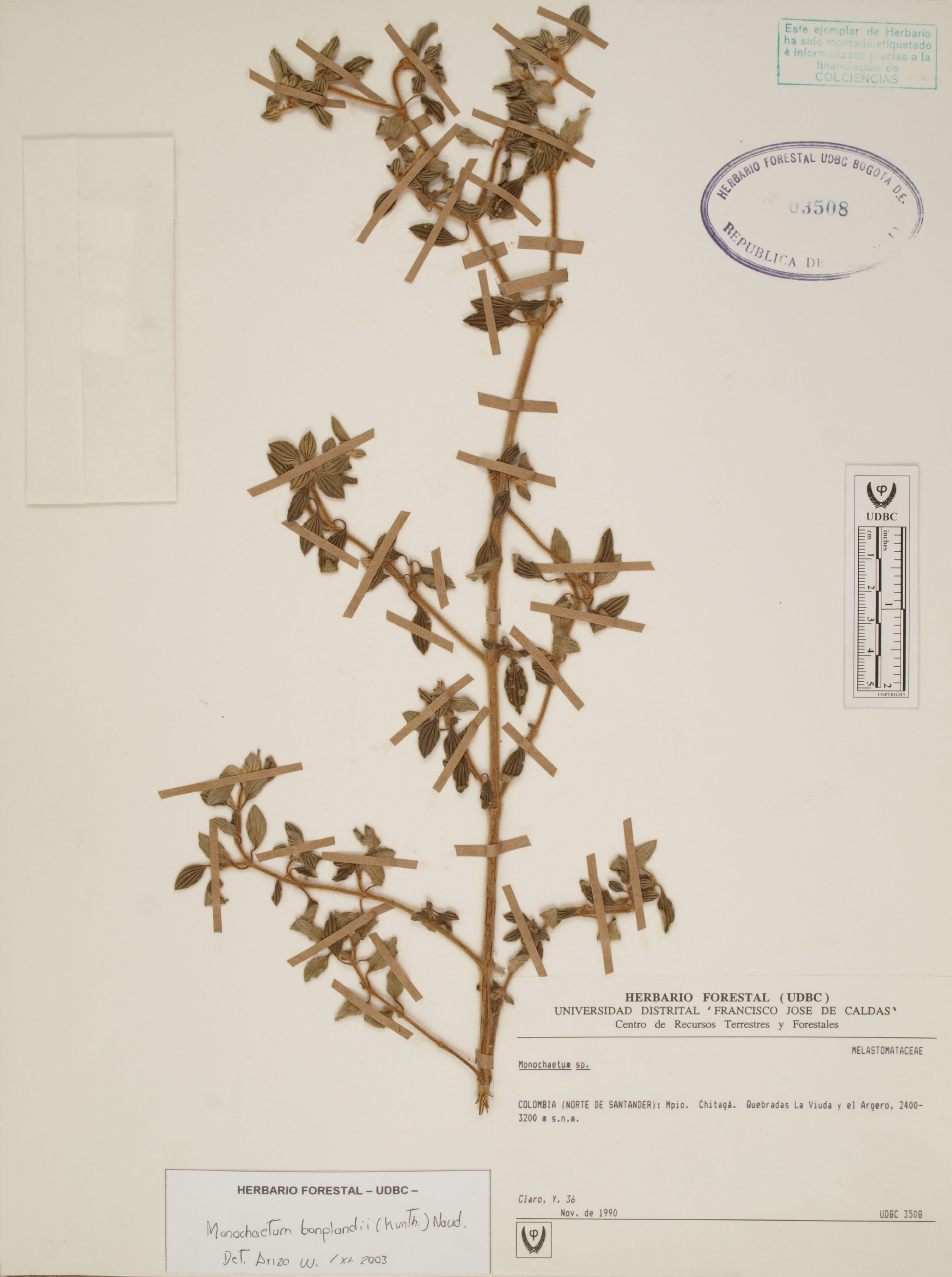 Fotografía del ejemplar Claro, Y. 36, determinado como Monochaetum bonplandii en el año 2003