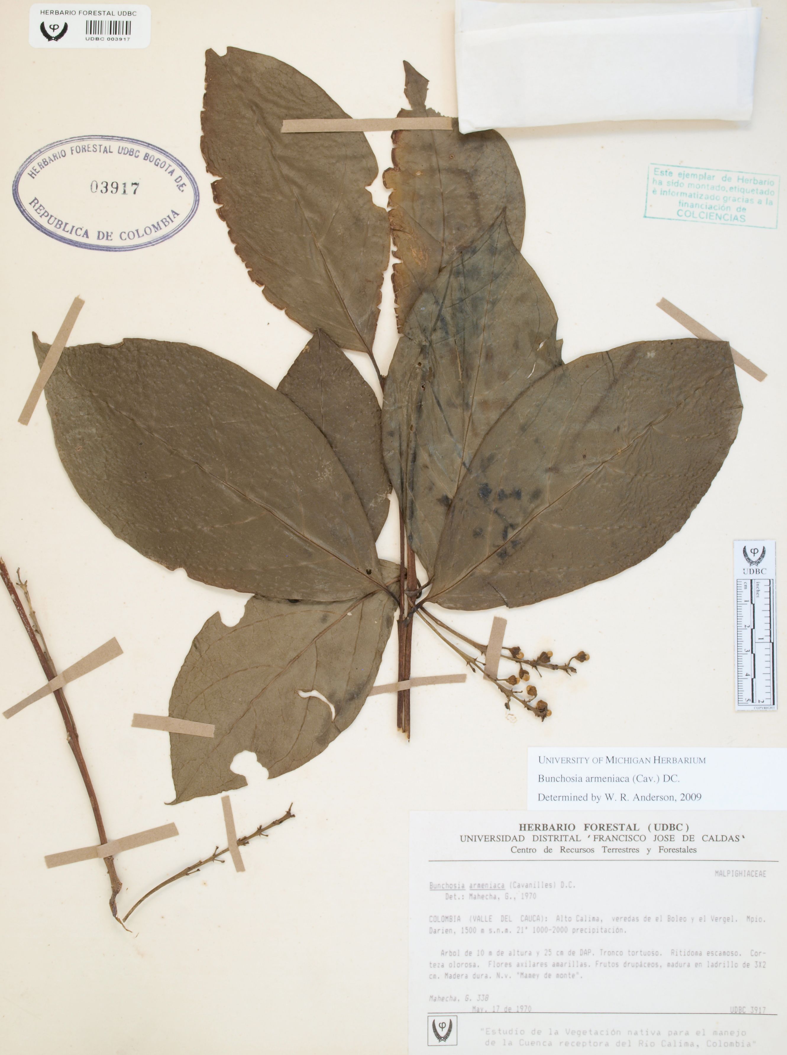 Fotografía del ejemplar Mahecha, G. 338, determinado como Bunchosia armeniaca en el año 2009