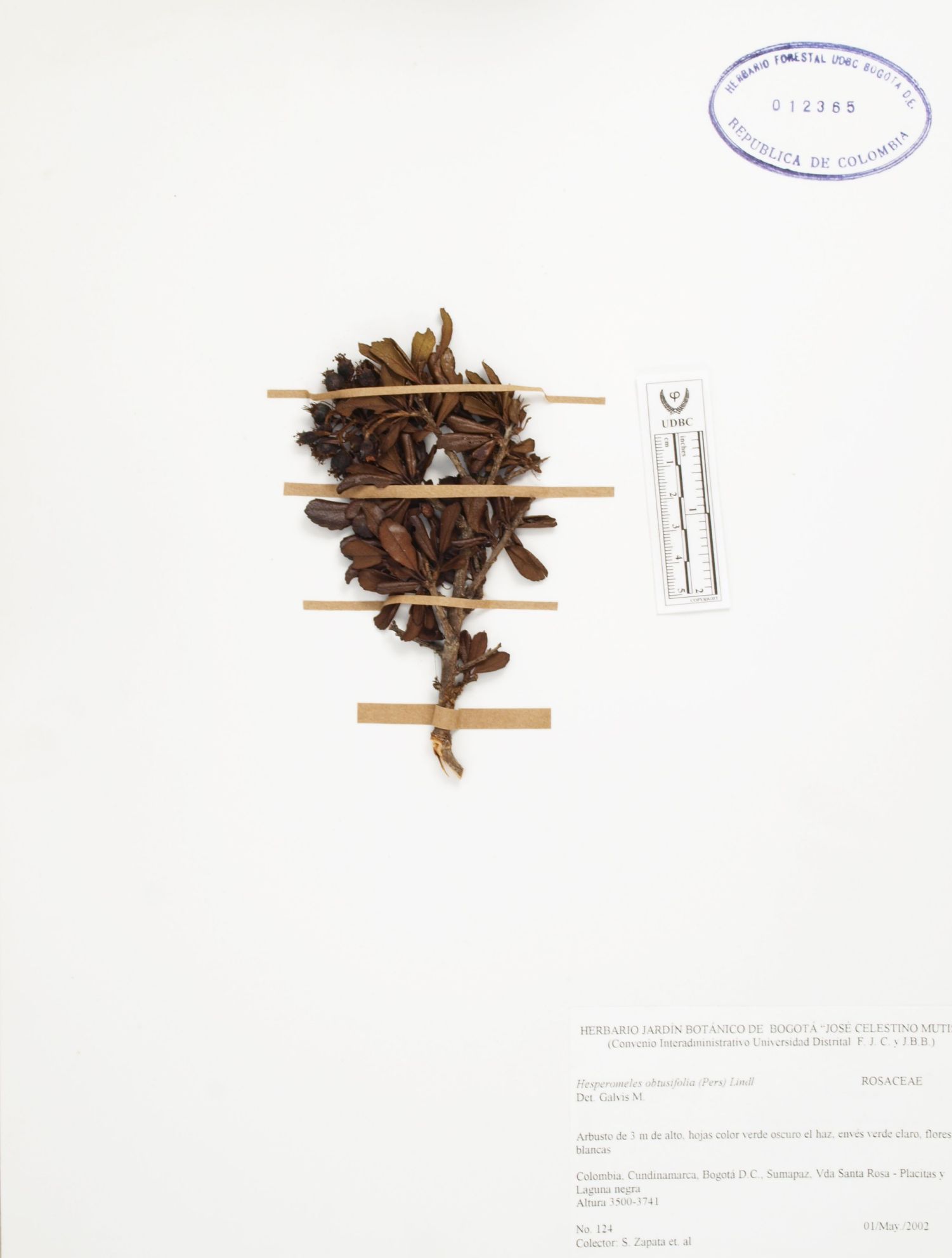 Fotografía del ejemplar Zapata, S. 124, determinado como Hesperomeles obtusifolia en el año 2002