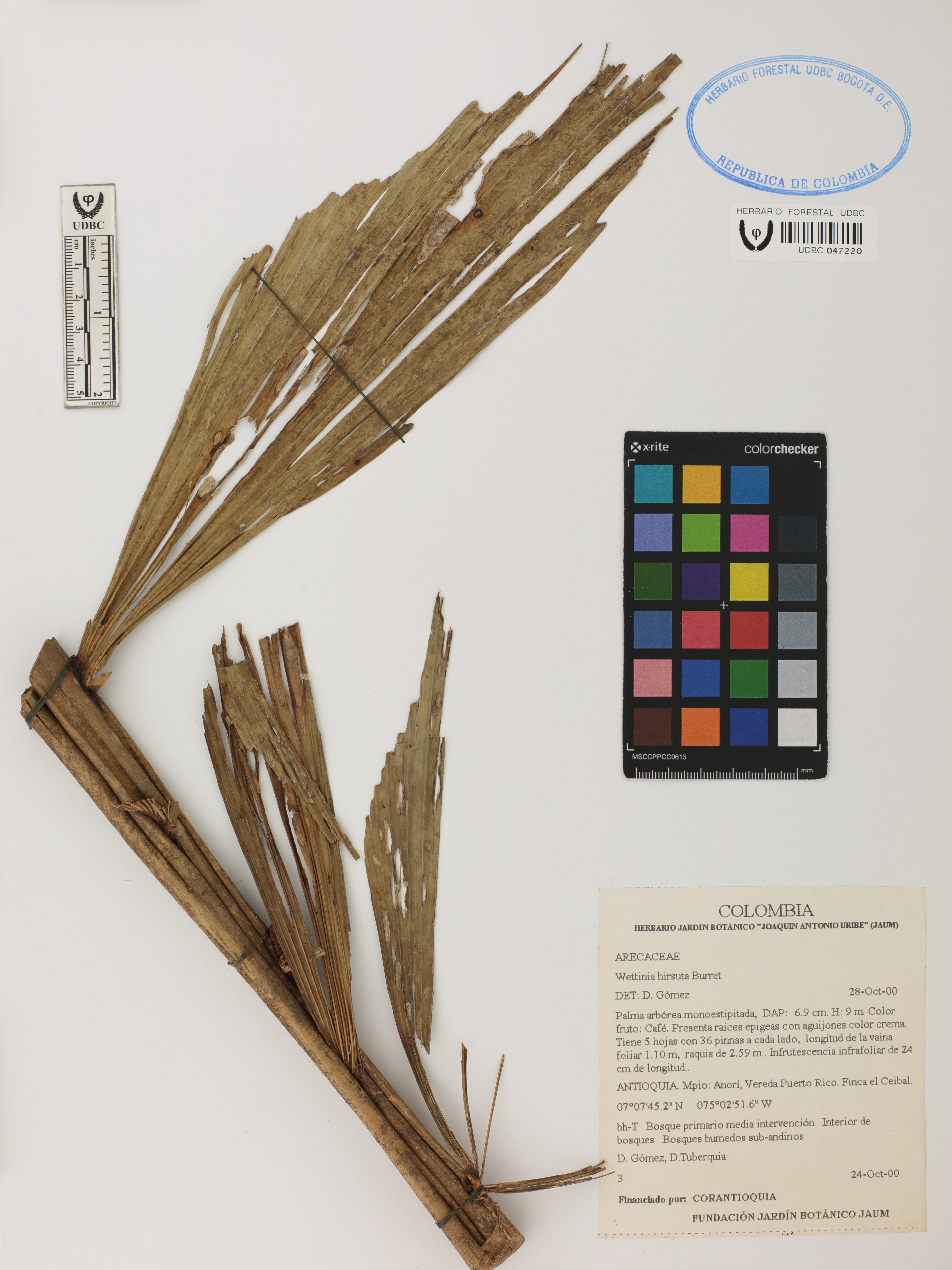 Fotografía del ejemplar Gómez, D. 3, determinado como Wettinia hirsuta en el año 2000