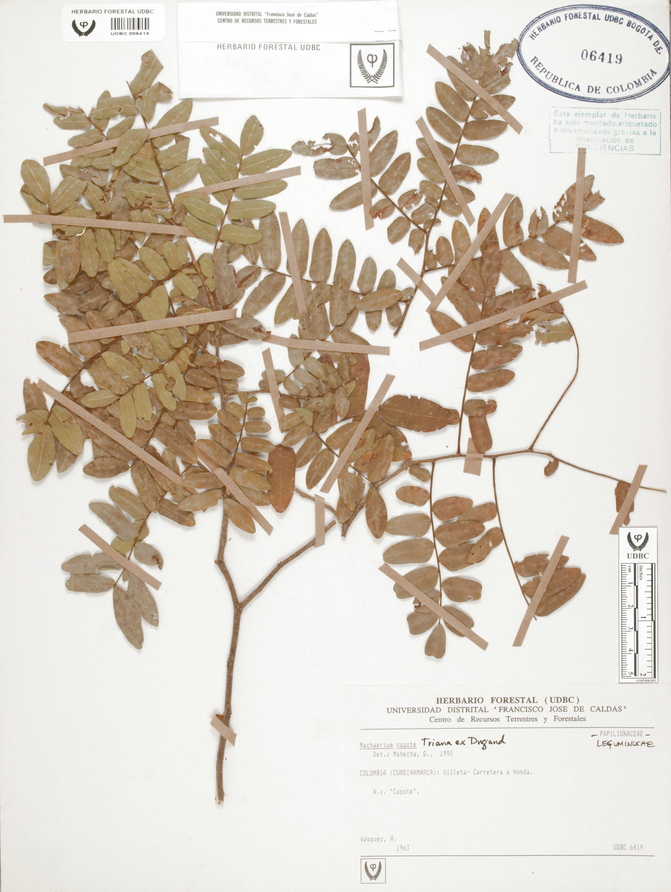 | dc.description | Fotografía del ejemplar Vásquez, R., determinado como Machaerium capote | |