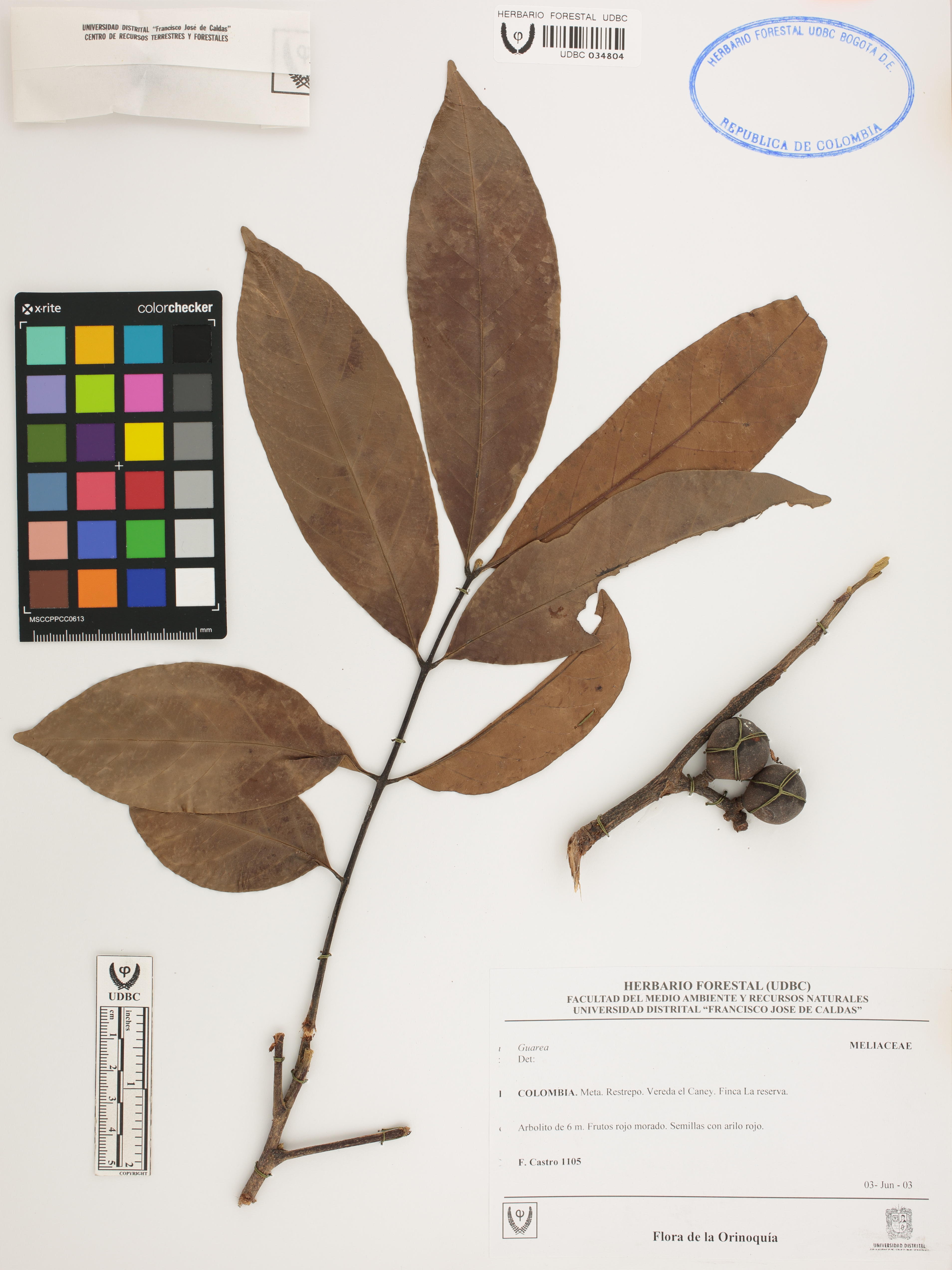Fotografía del ejemplar Castro, F. 1105, determinado como Guarea sp.
