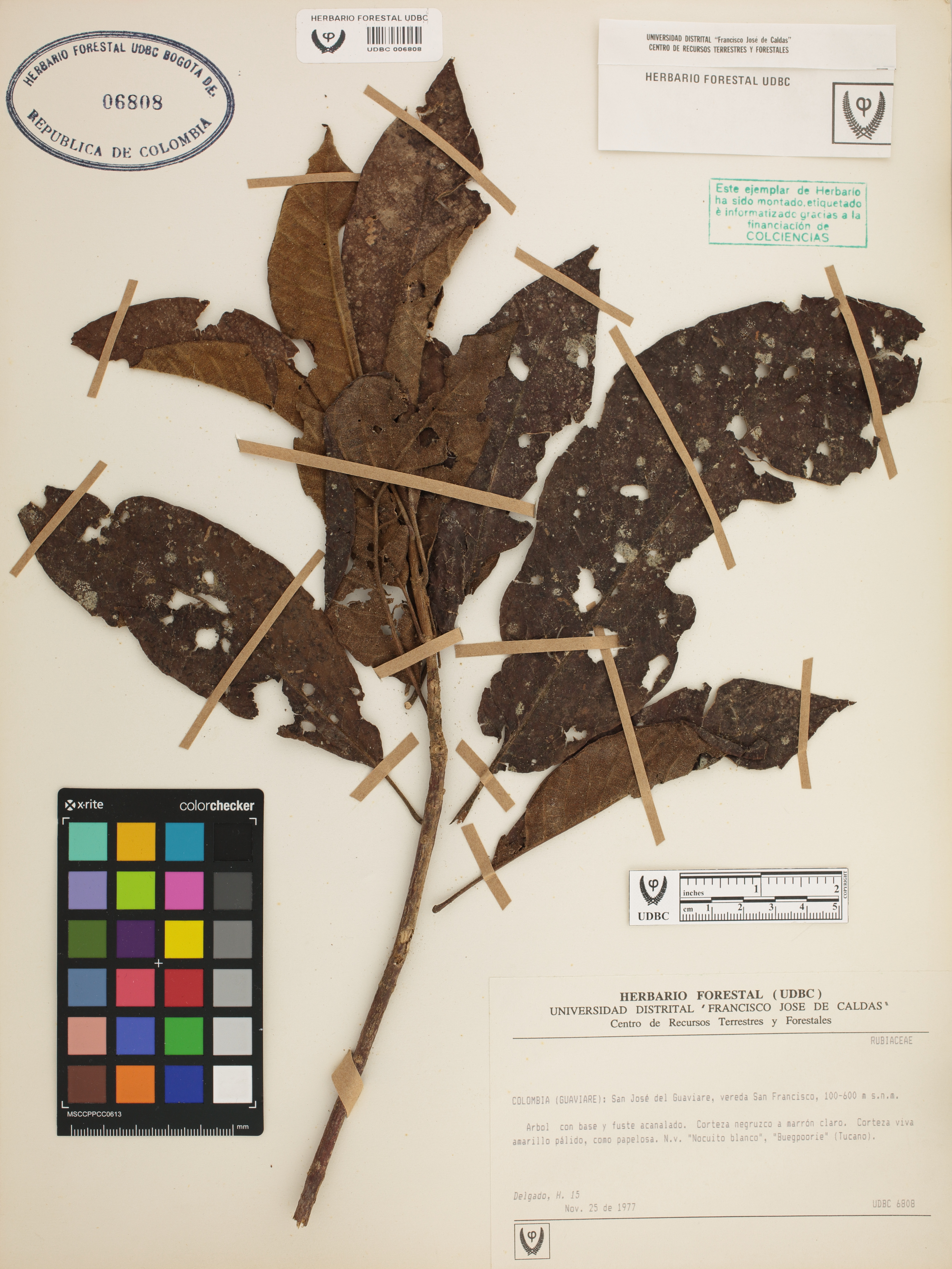 Fotografía del ejemplar Delgado, H. 15, determinado como Rubiaceae