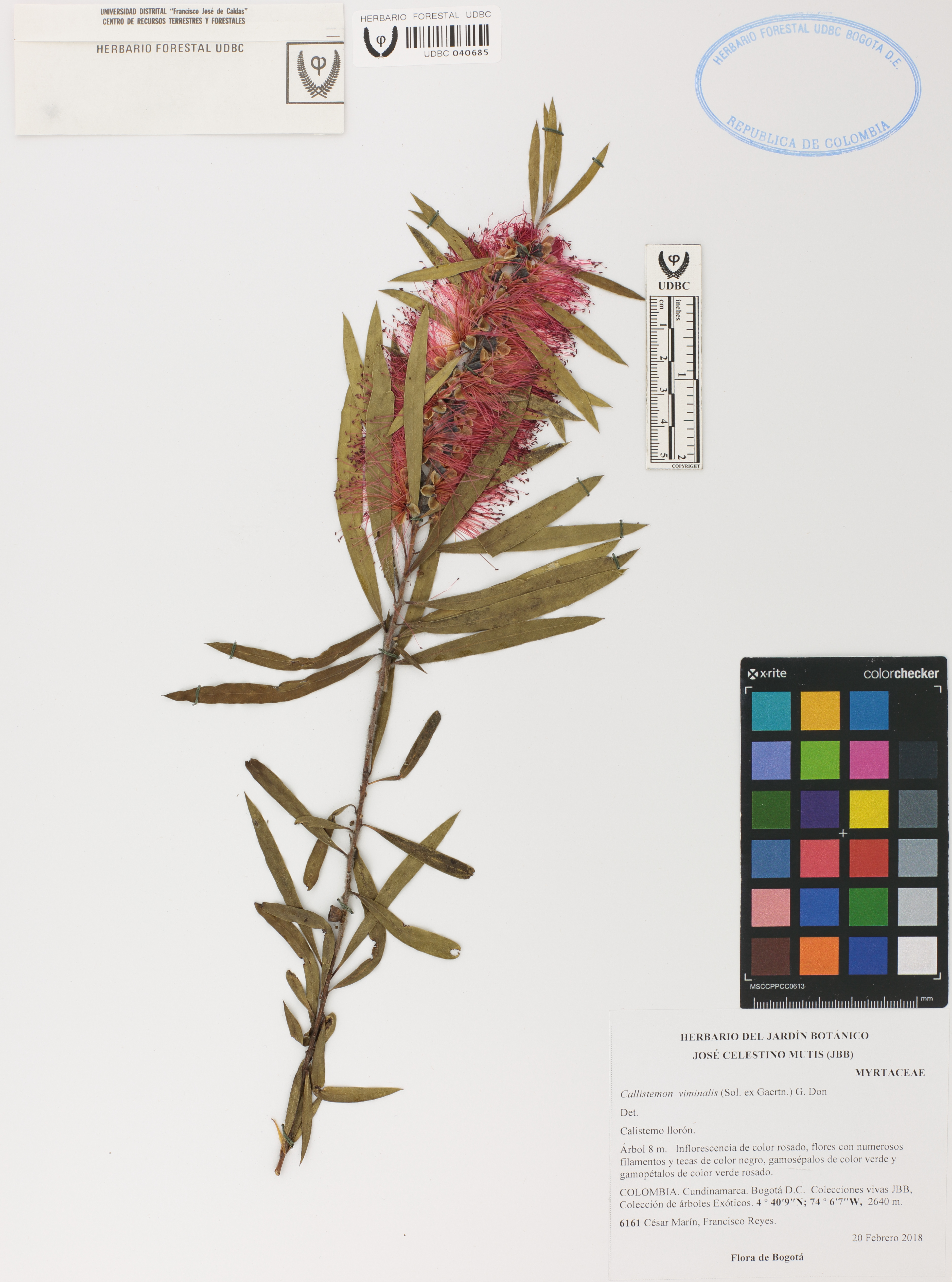 Fotografía del ejemplar Marín, C. 6161, determinado como Callistemon viminalis