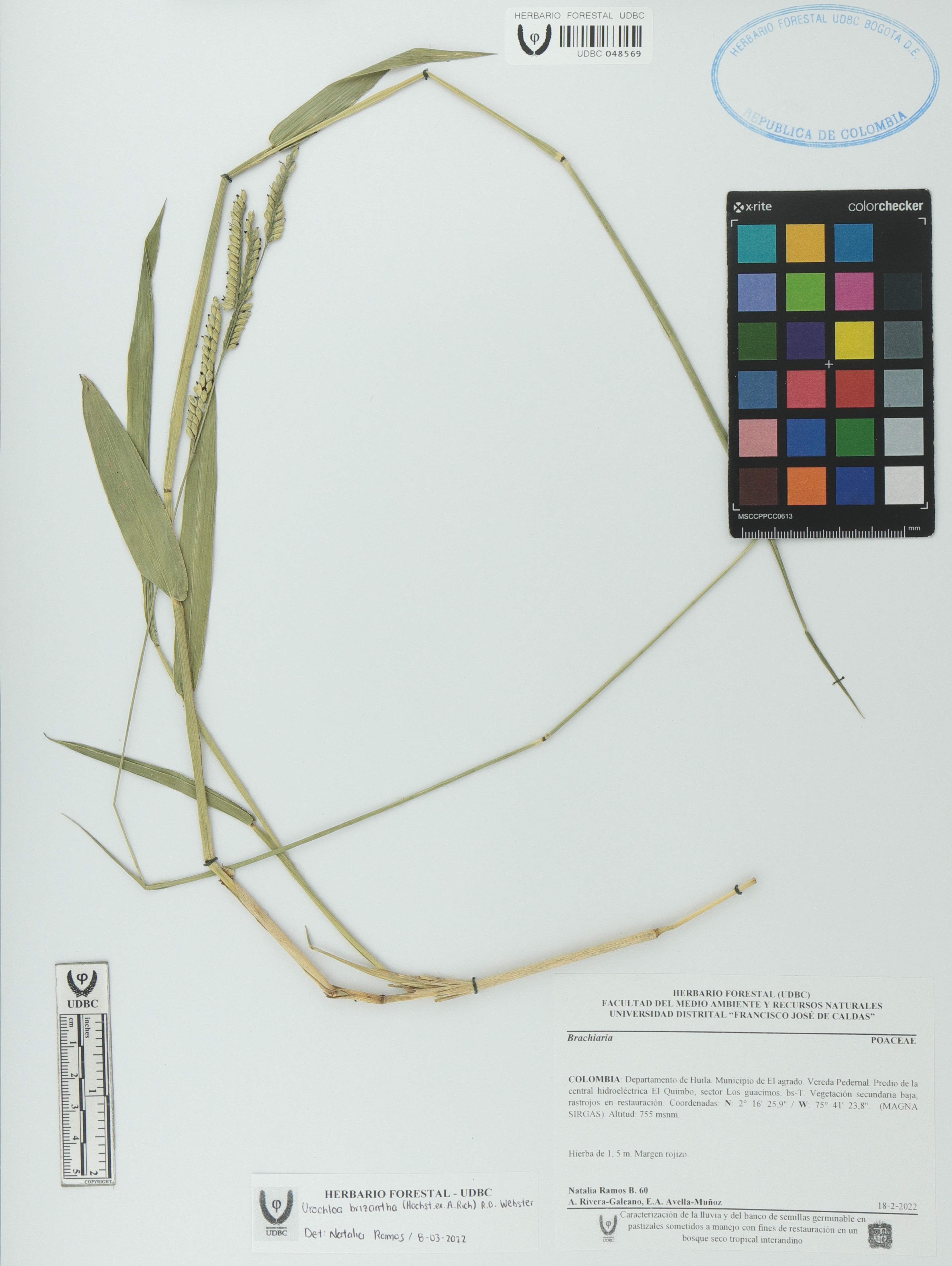 Fotografía del ejemplar Ramos-B., Natalia 60, determinado como Urochloa brizantha en el año 2022