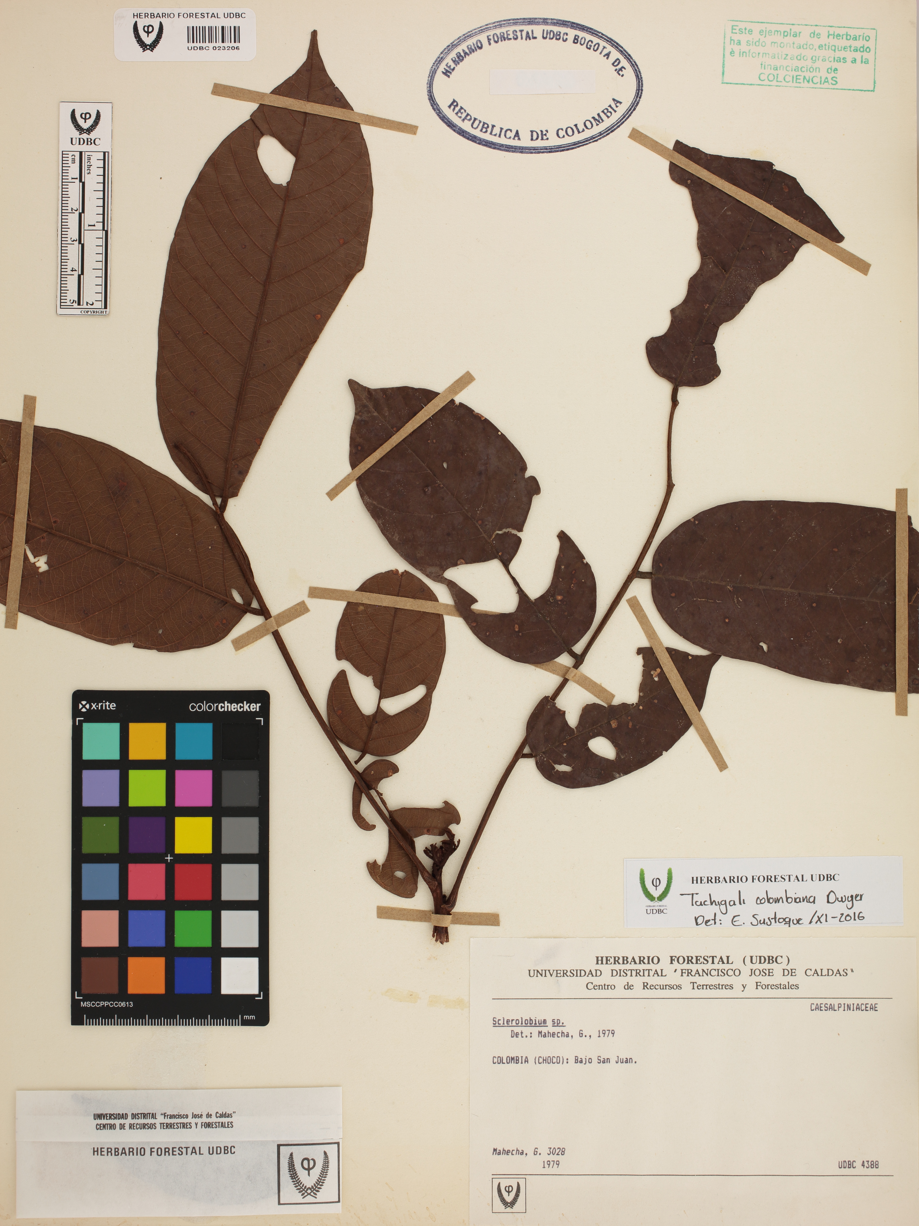 Fotografía del ejemplar Mahecha, G. 3028, determinado como Tachigali colombiana en el año 2016