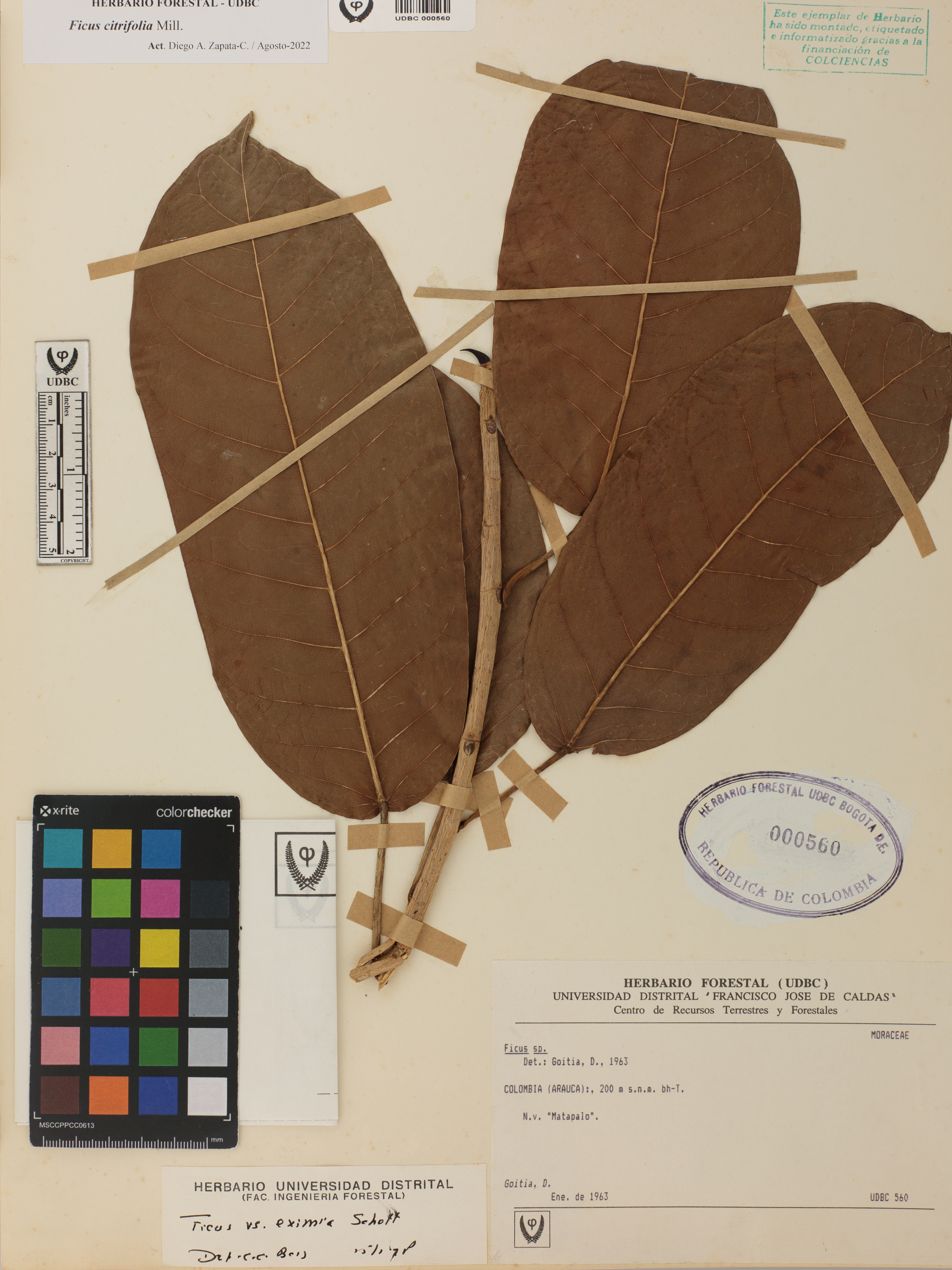 Fotografía del ejemplar Goitia, D., determinado como Ficus citrifolia en el año 1997