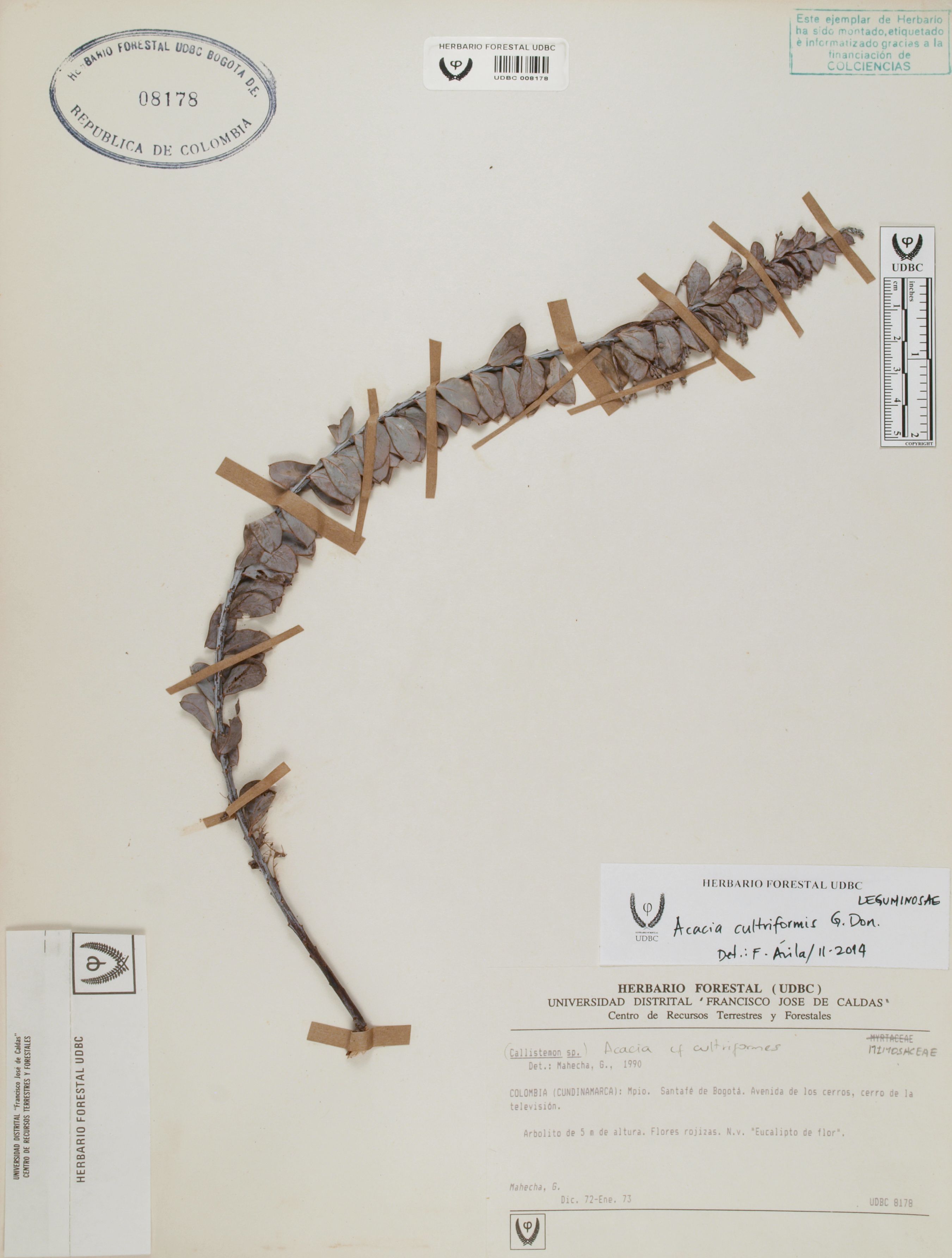 Fotografía del ejemplar Mahecha, G., determinado como Acacia cultriformis en el año 2014