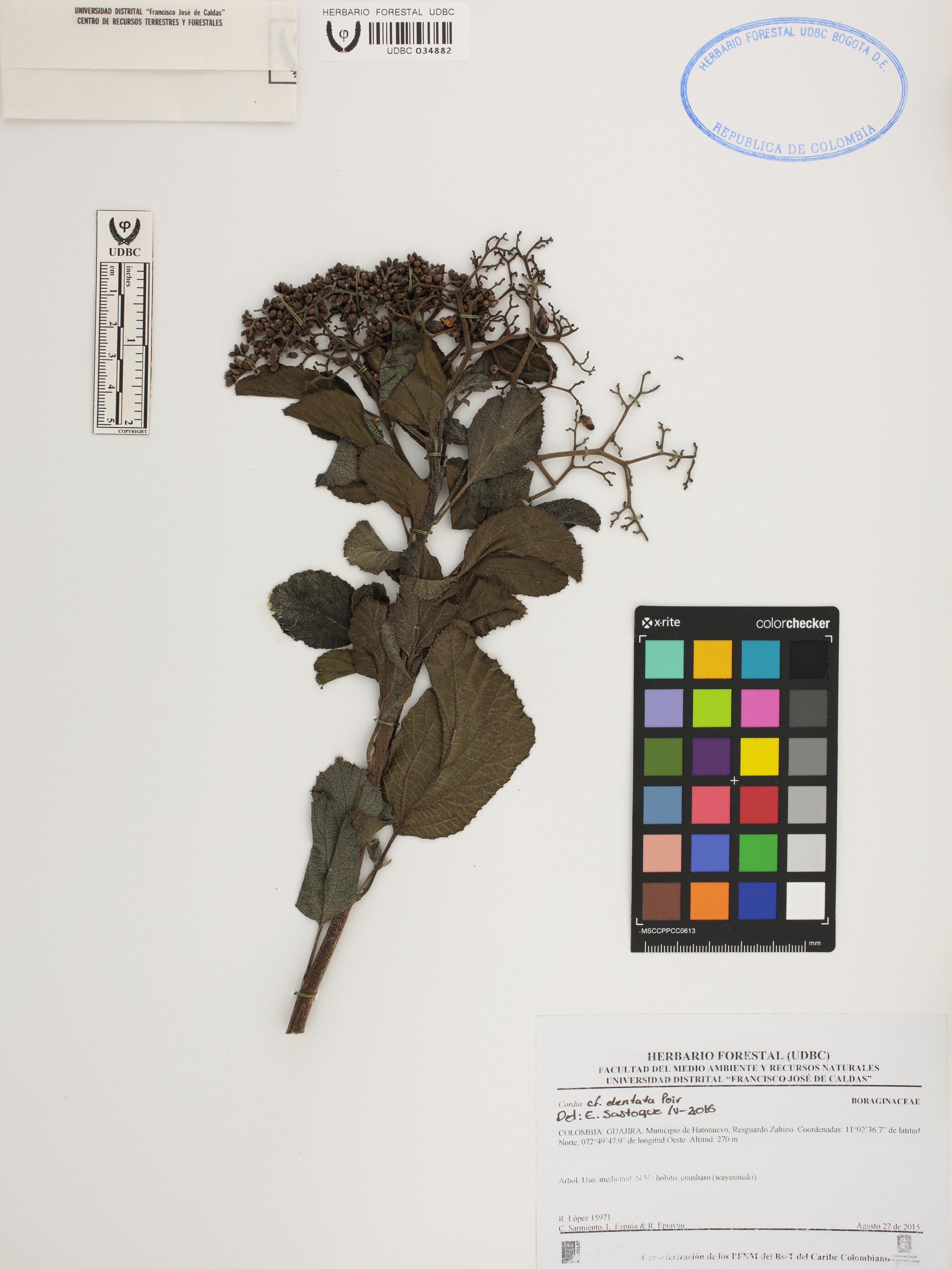 Fotografía del ejemplar López, R. 15971, determinado como Cordia dentata en el año 2016