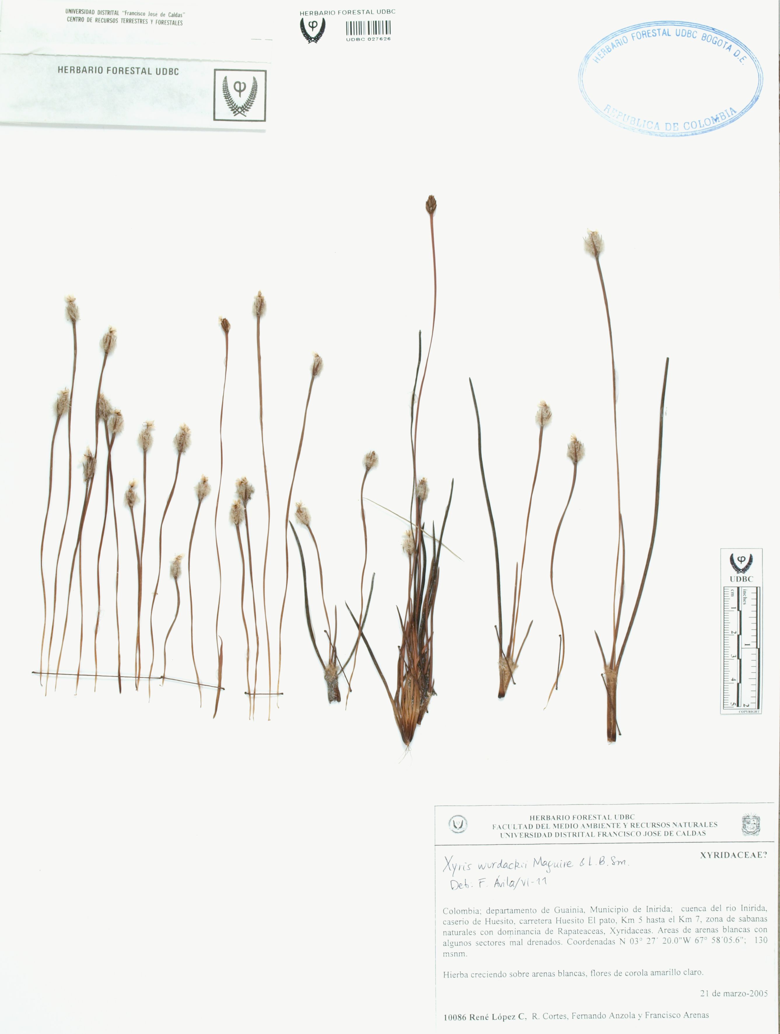 Fotografía del ejemplar López, R. 10086, determinado como Xyris wurdackii en el año 2011