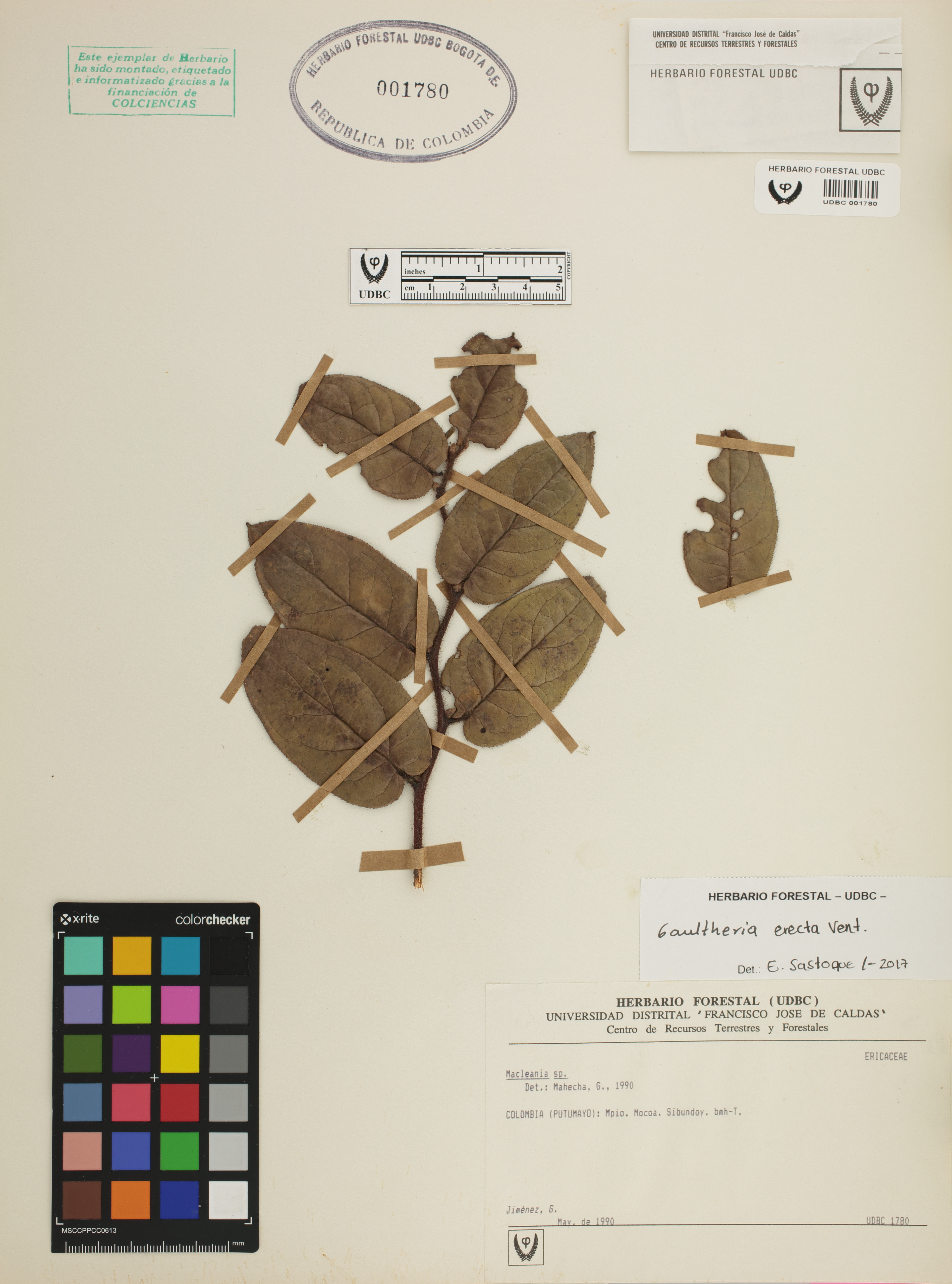 Fotografía del ejemplar Jiménez, G., determinado como Gaultheria erecta en el año 2017