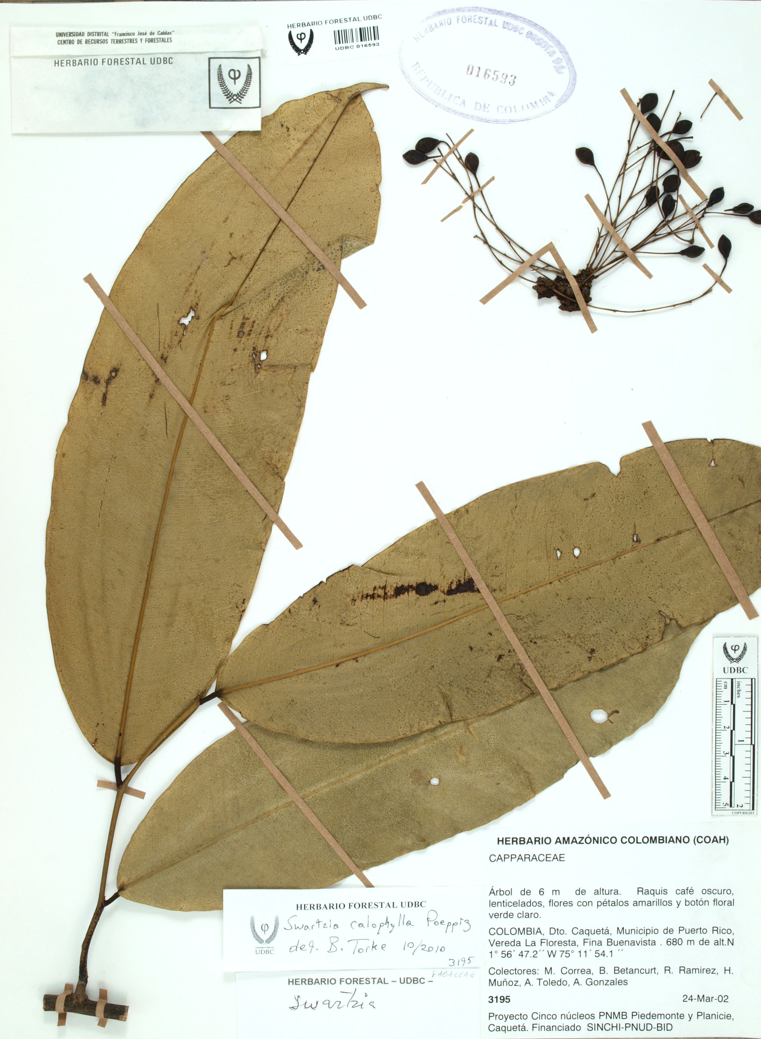 Fotografía del ejemplar Correa, M. 3195, determinado como Swartzia calophylla en el año 2010