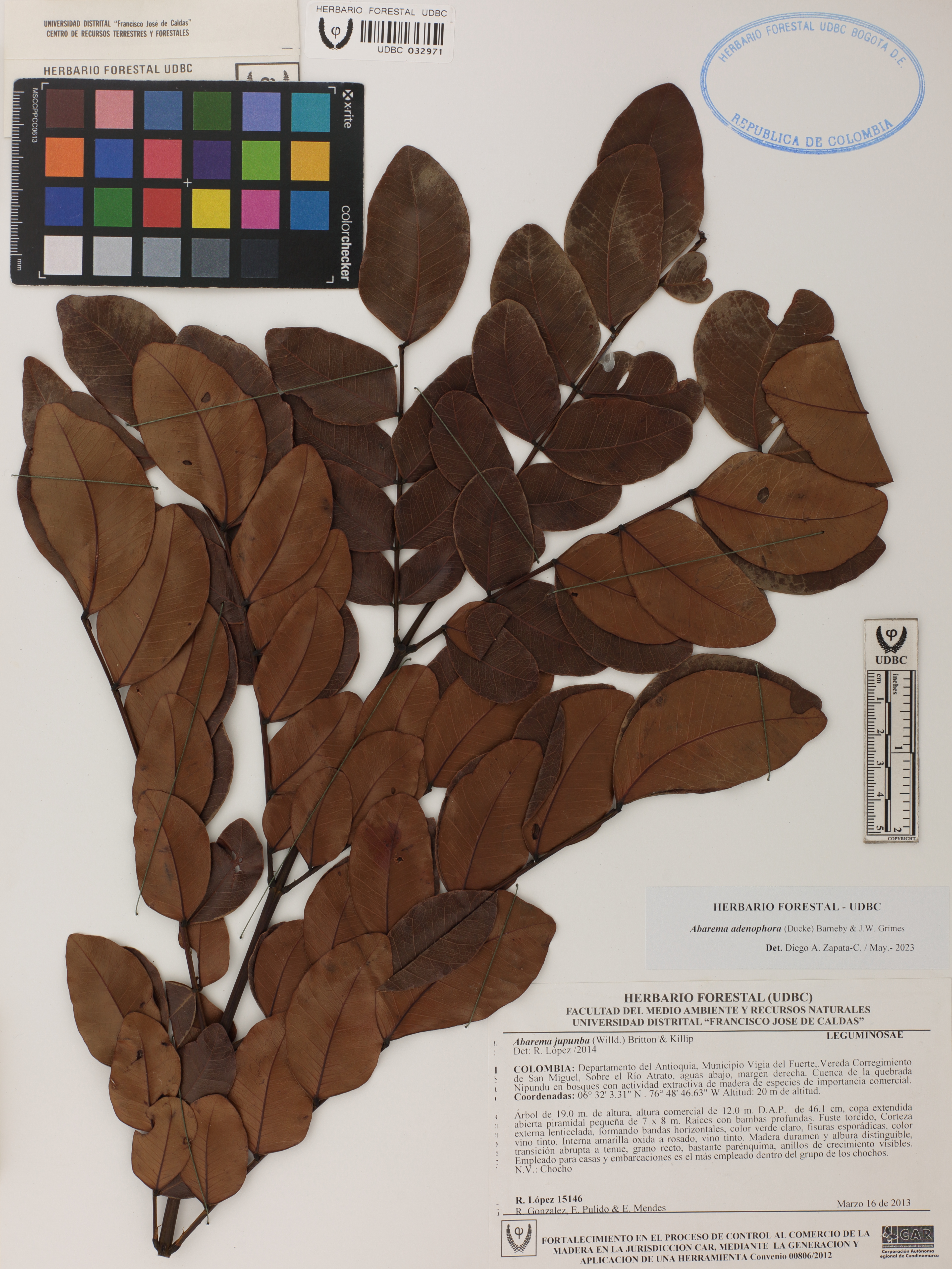 Fotografía del ejemplar López, R. 15146, determinado como Abarema adenophora en el año 2023
