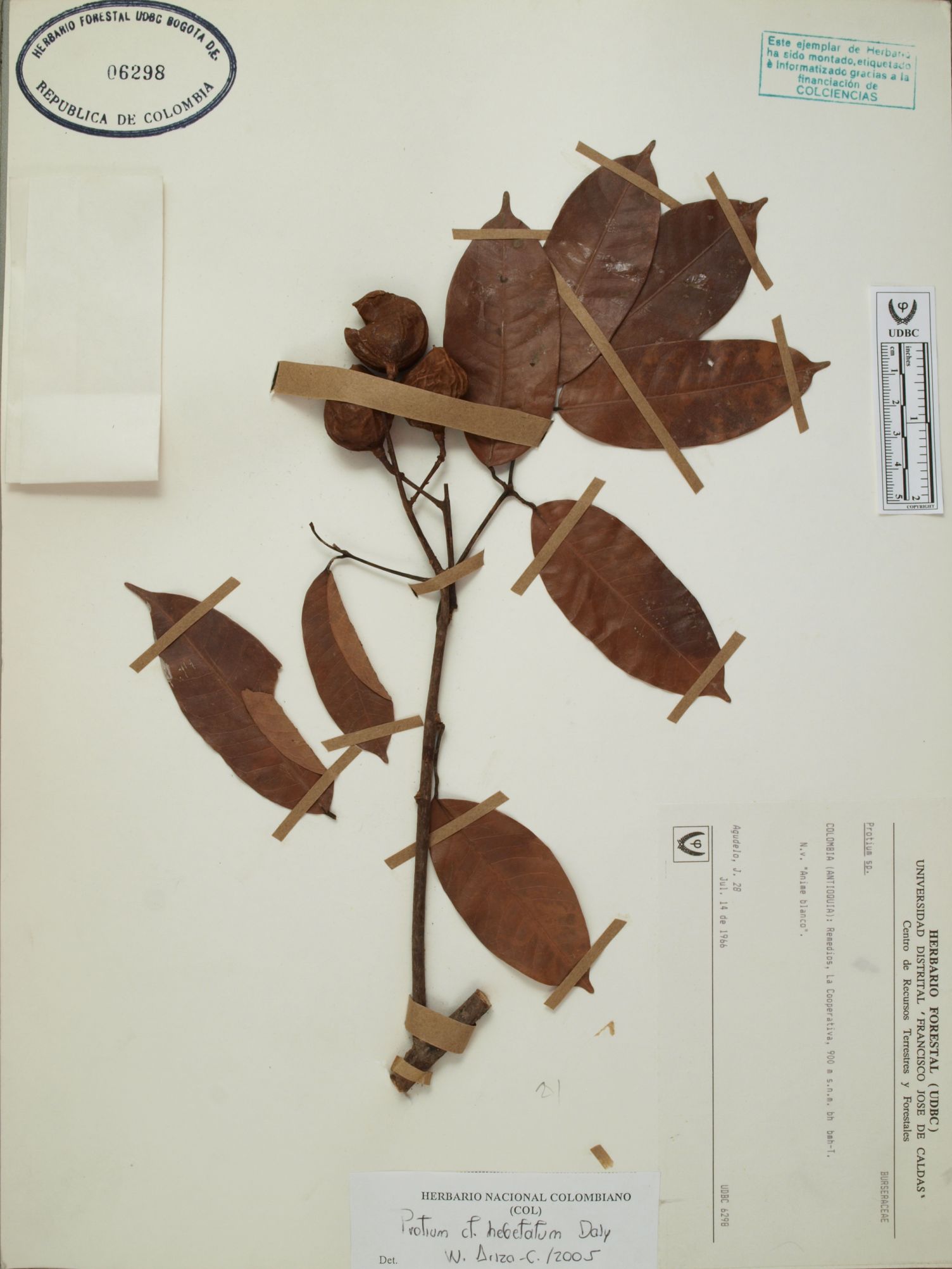 Fotografía del ejemplar Agudelo, J., determinado como Protium hebetatum en el año 2005