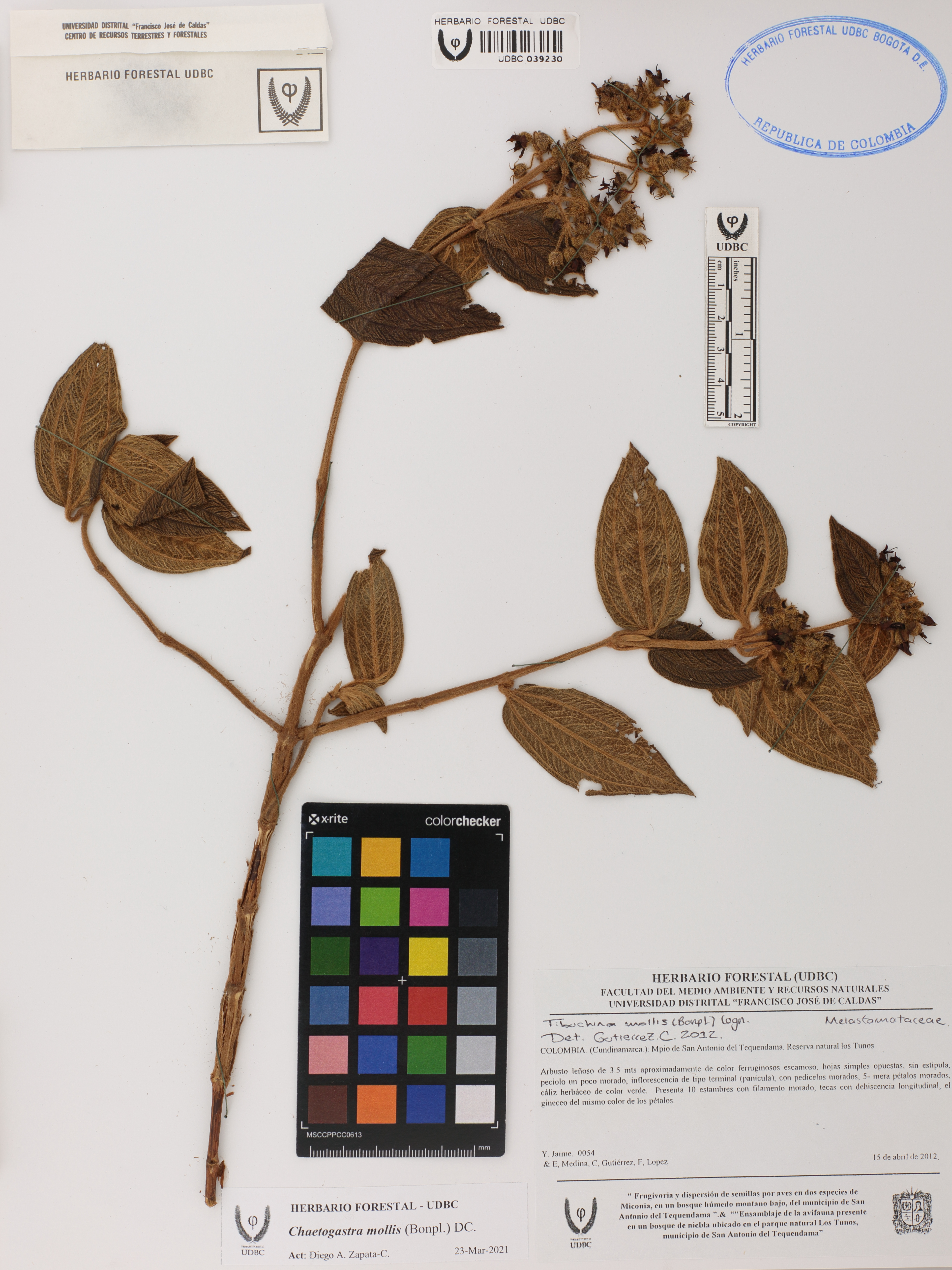 Fotografía del ejemplar Jaime, Y. 54, determinado como Chaetogastra mollis en el año 2012