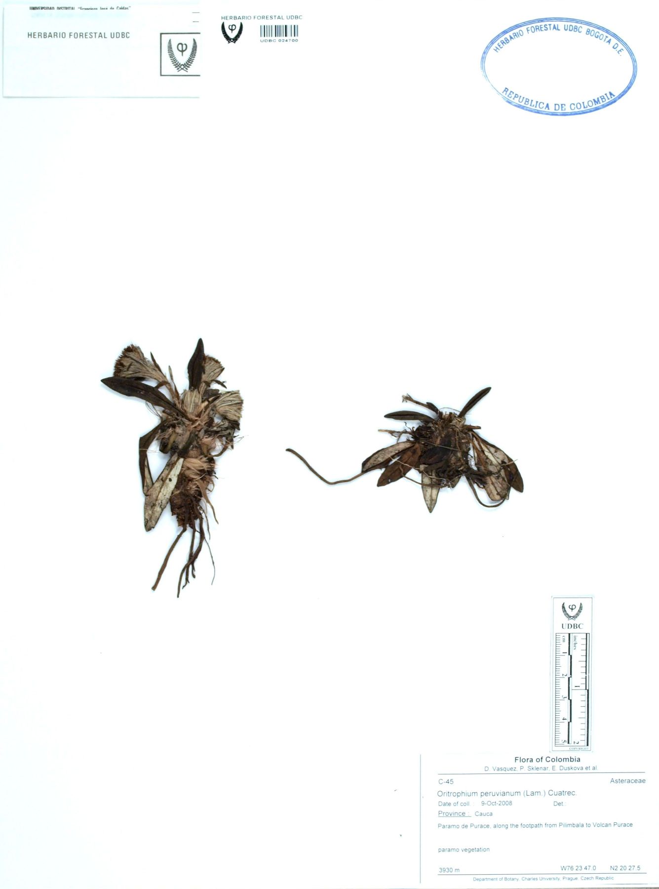 Fotografía del ejemplar Vásquez, D. 45, determinado como Oritrophium peruvianum