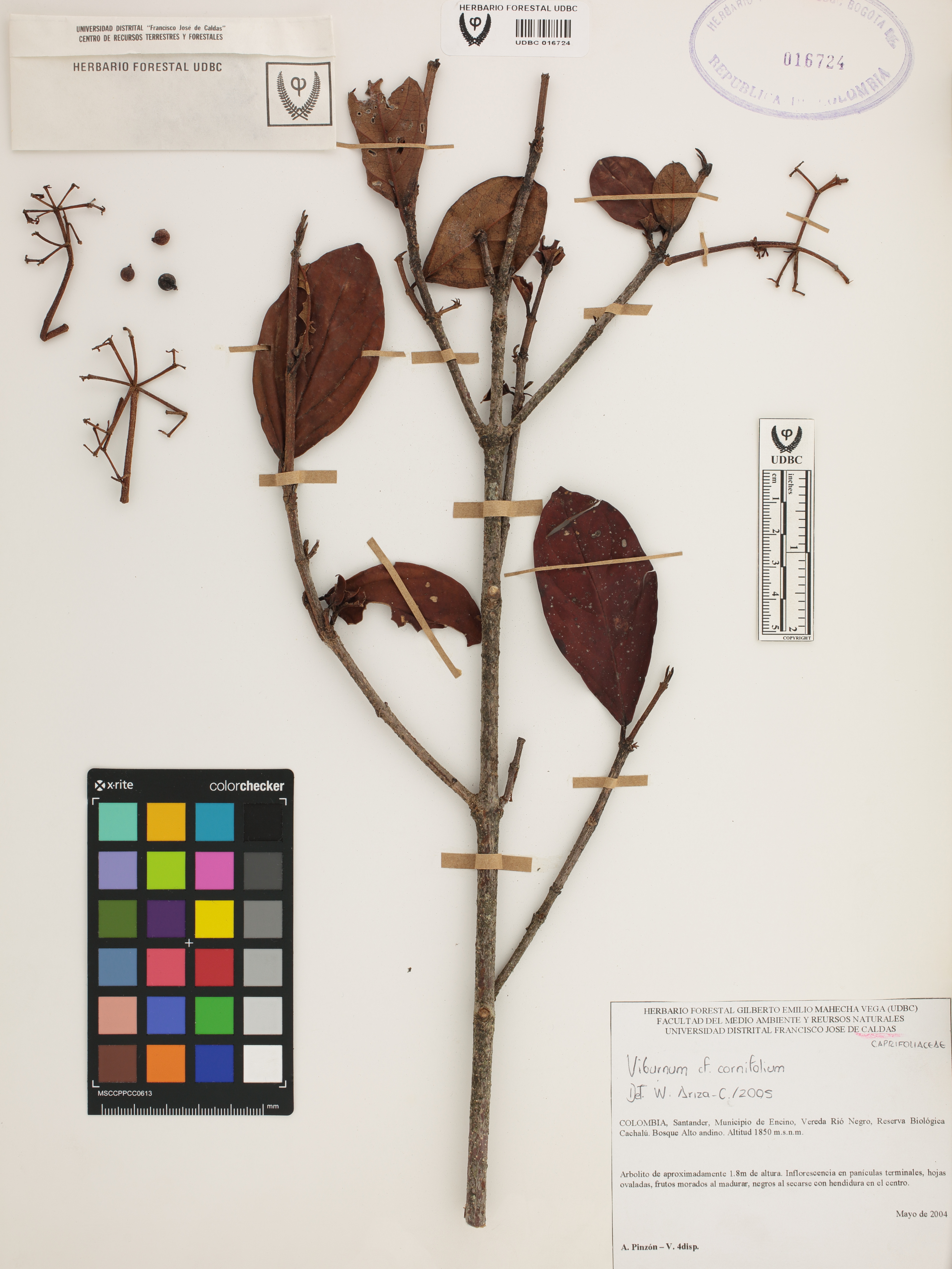 Fotografía del ejemplar Pinzón-V., V. 4, determinado como Viburnum cornifolium en el año 2005
