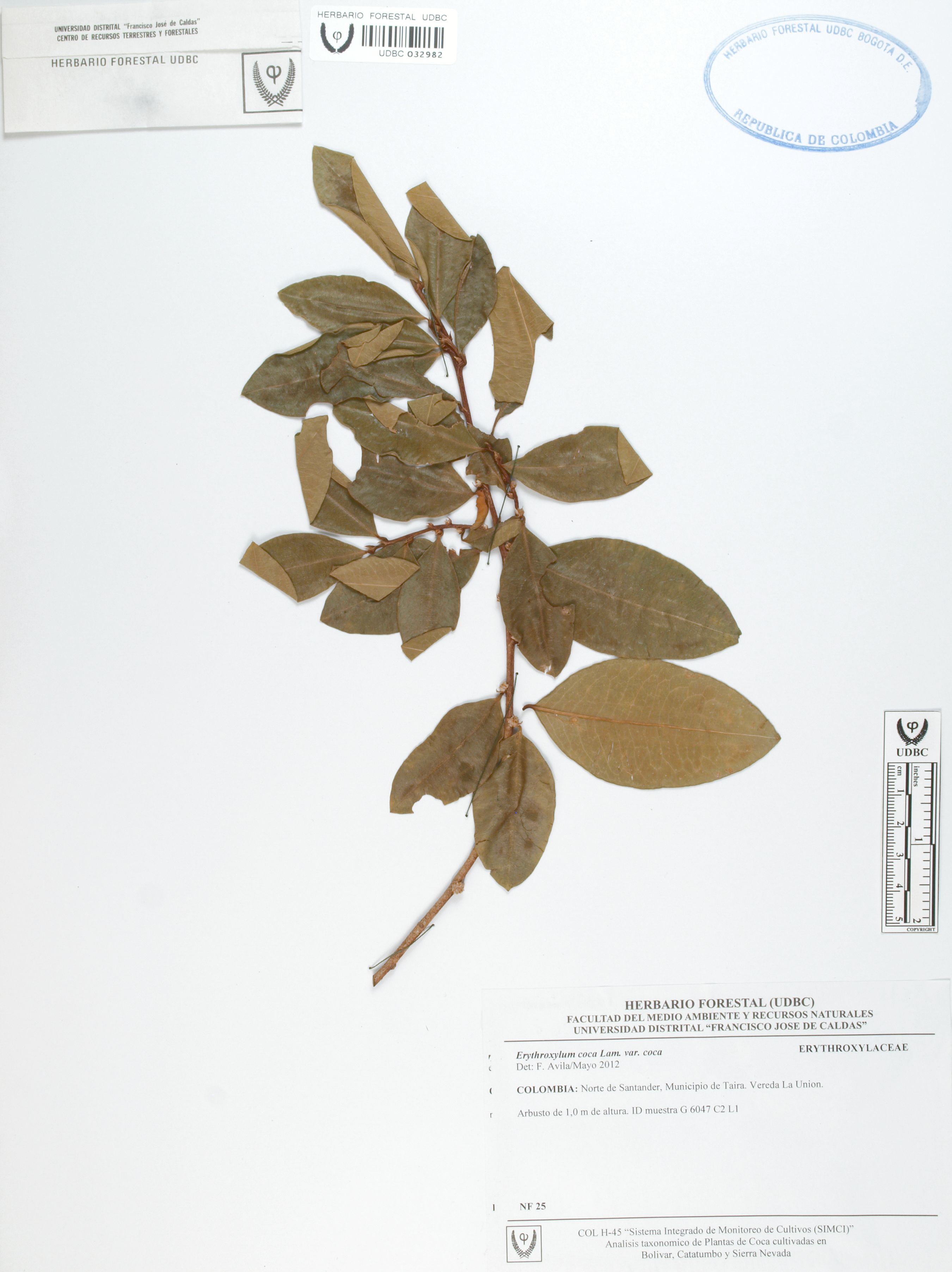 | dc.description | Fotografía del ejemplar SD 25, determinado como Erythroxylum coca var. coca en el año 2012 | |