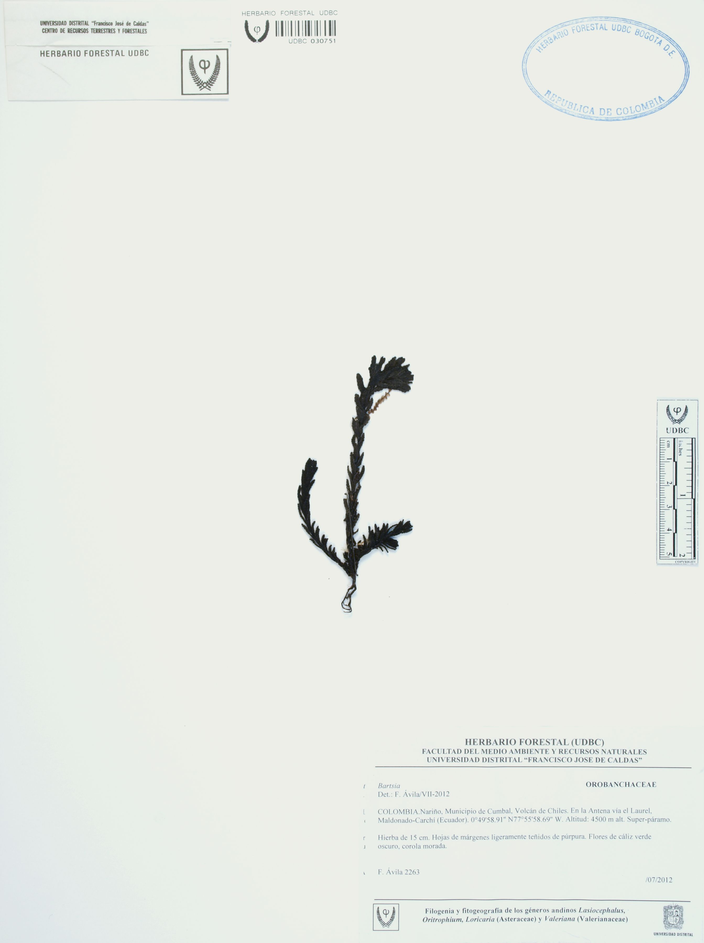 Fotografía del ejemplar Ávila, F. 2263, determinado como Bartsia sp. en el año 2012