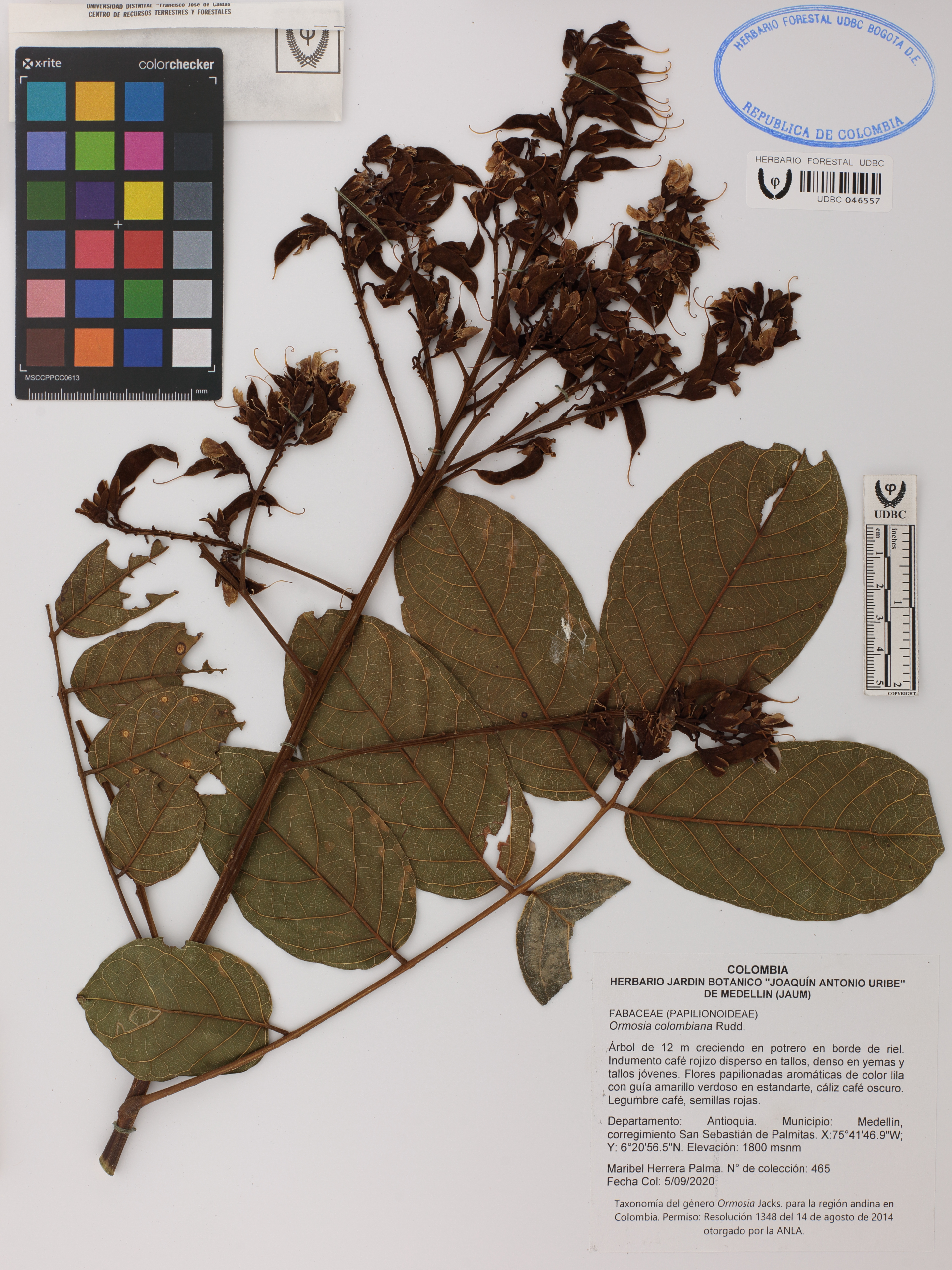 Fotografía del ejemplar Herrera-Palma, M. 465, determinado como Ormosia colombiana en el año 2020