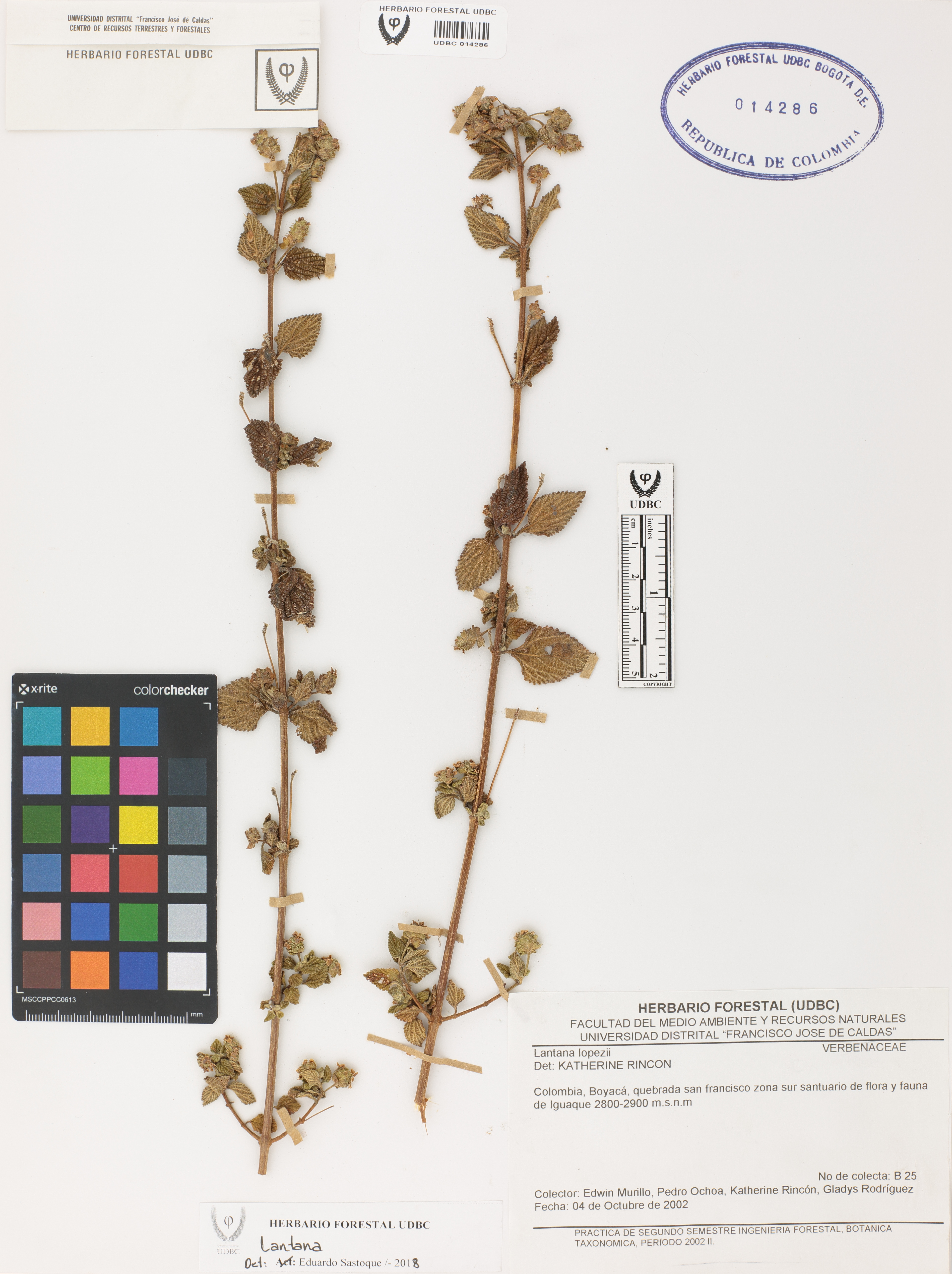 Fotografía del ejemplar Murillo, E. 25, determinado como Lantana sp. en el año 2018