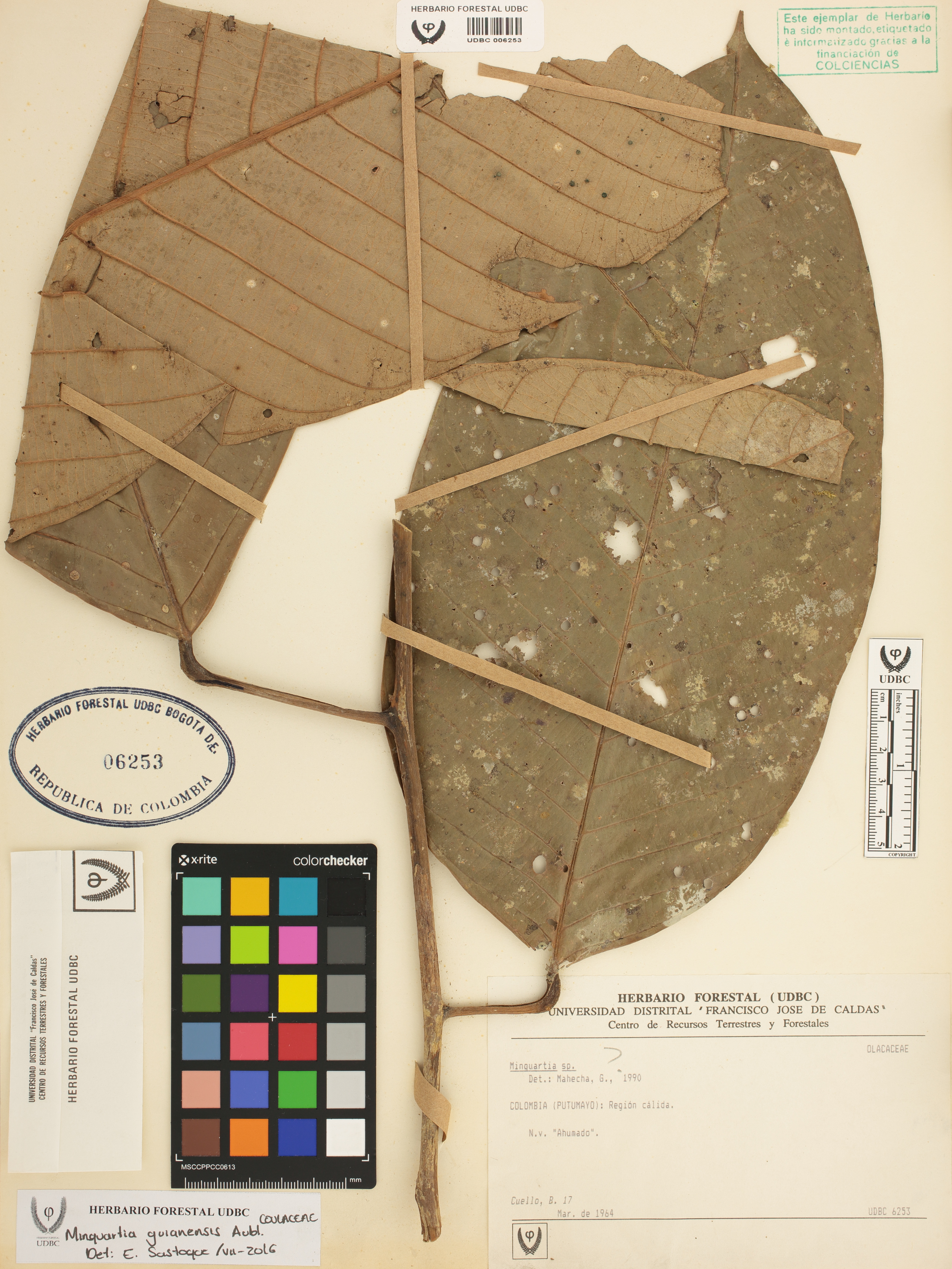 Fotografía del ejemplar Cuello, B. 17, determinado como Minquartia guianensis en el año 2016