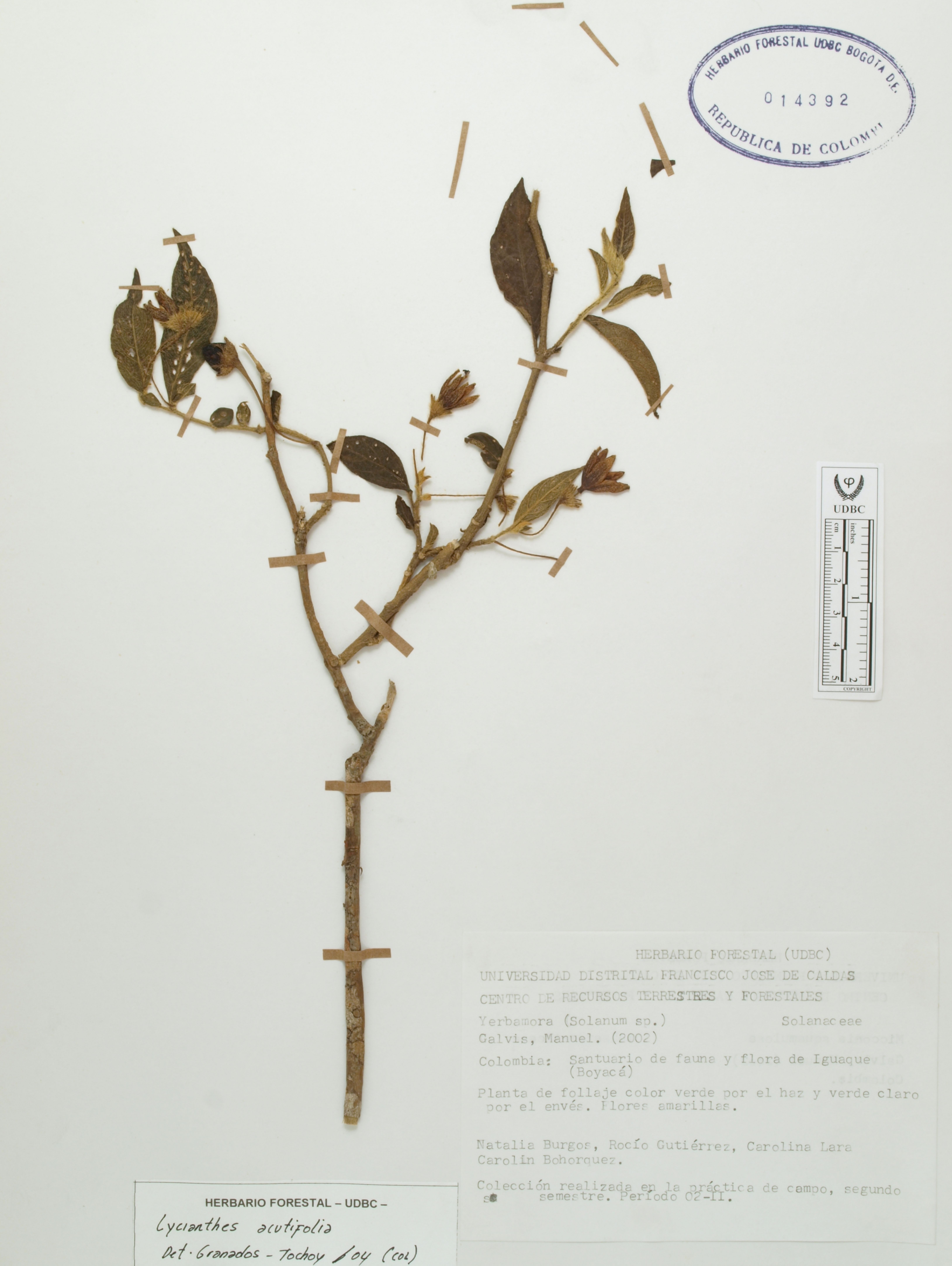Fotografía del ejemplar Burgos, N., determinado como Lycianthes acutifolia en el año 2004