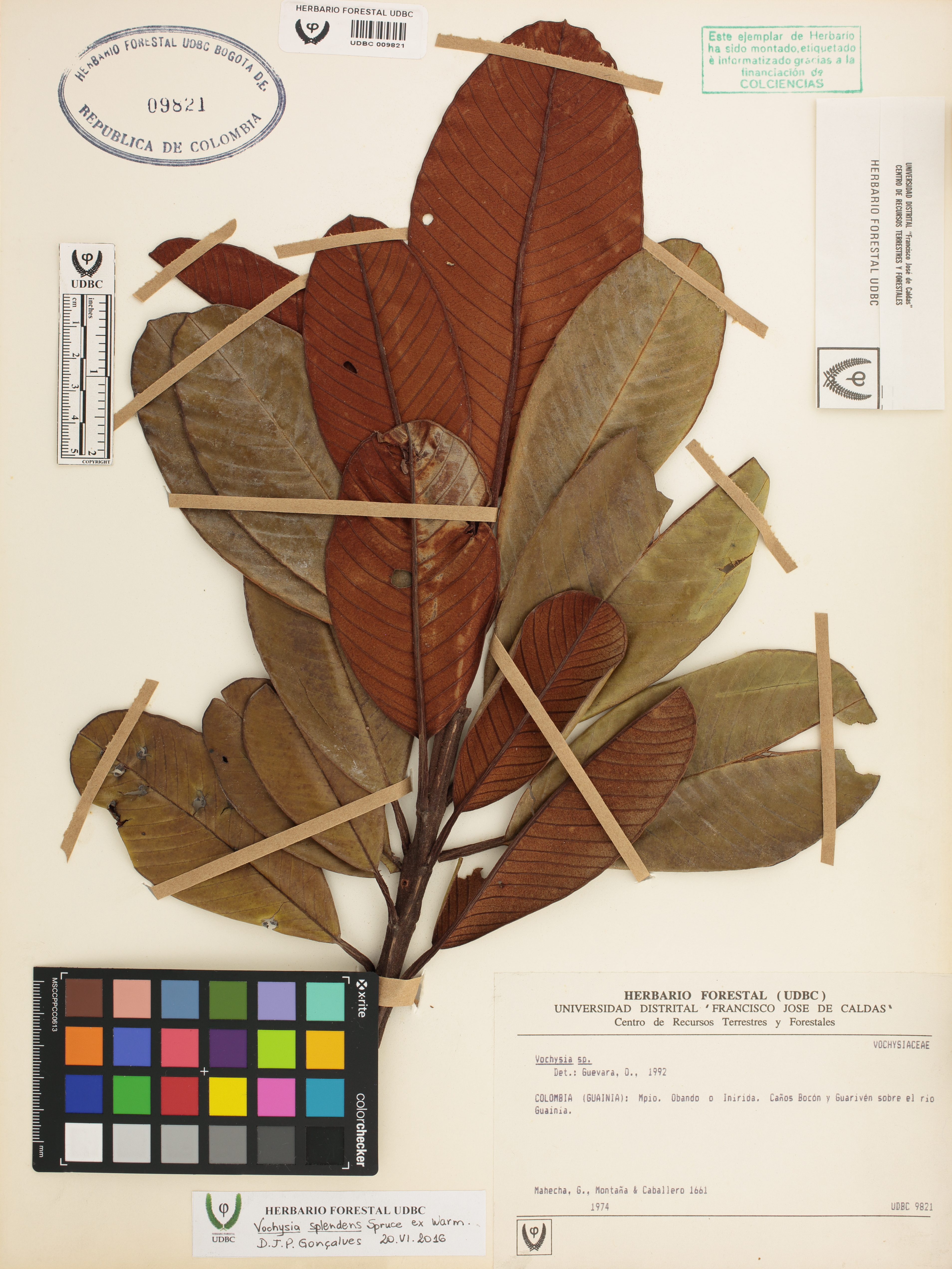 Fotografía del ejemplar Mahecha, G. 1661, determinado como Vochysia splendens en el año 2016