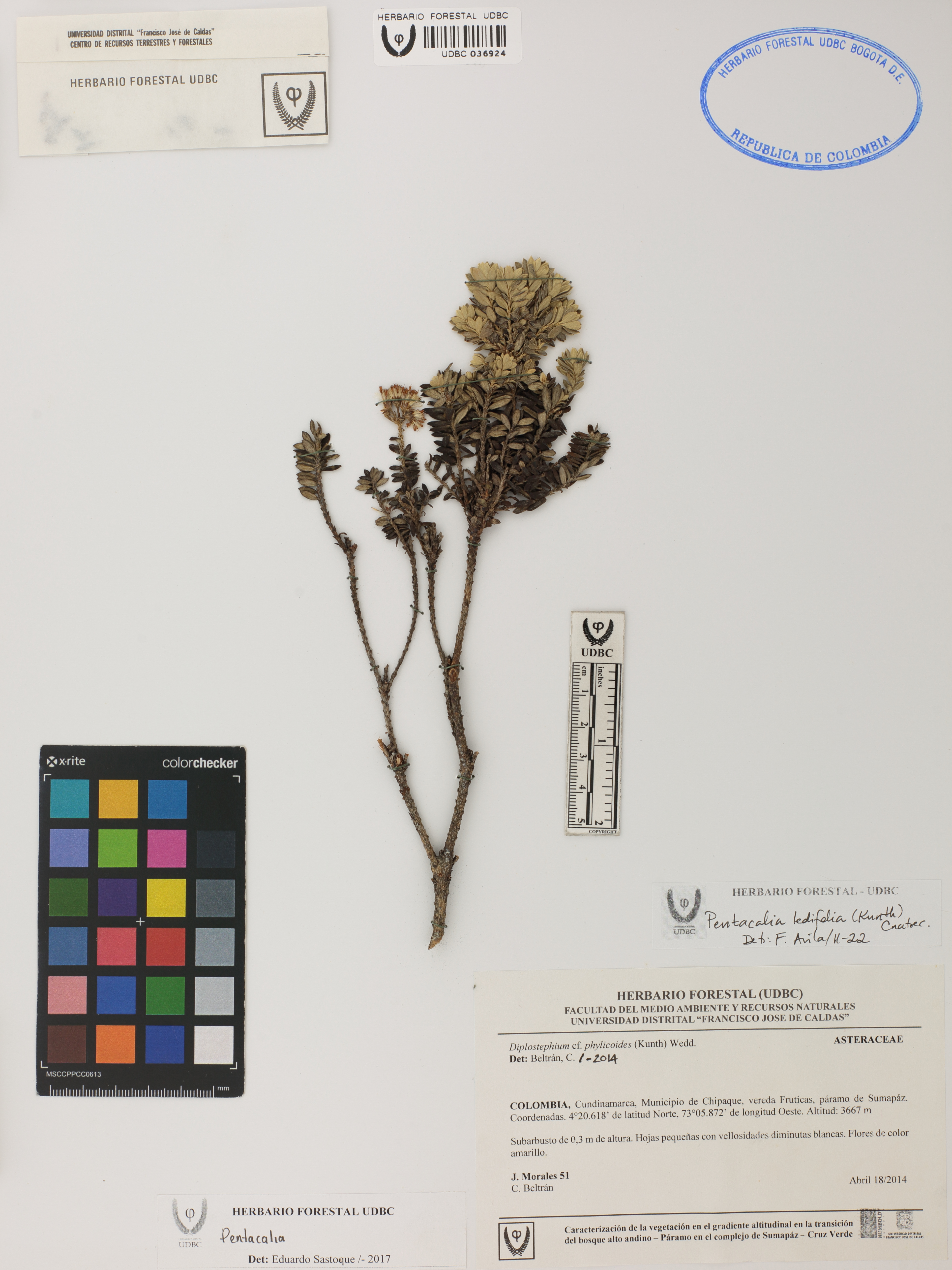 Fotografía del ejemplar Morales, J. 51, determinado como Pentacalia ledifolia en el año 2022