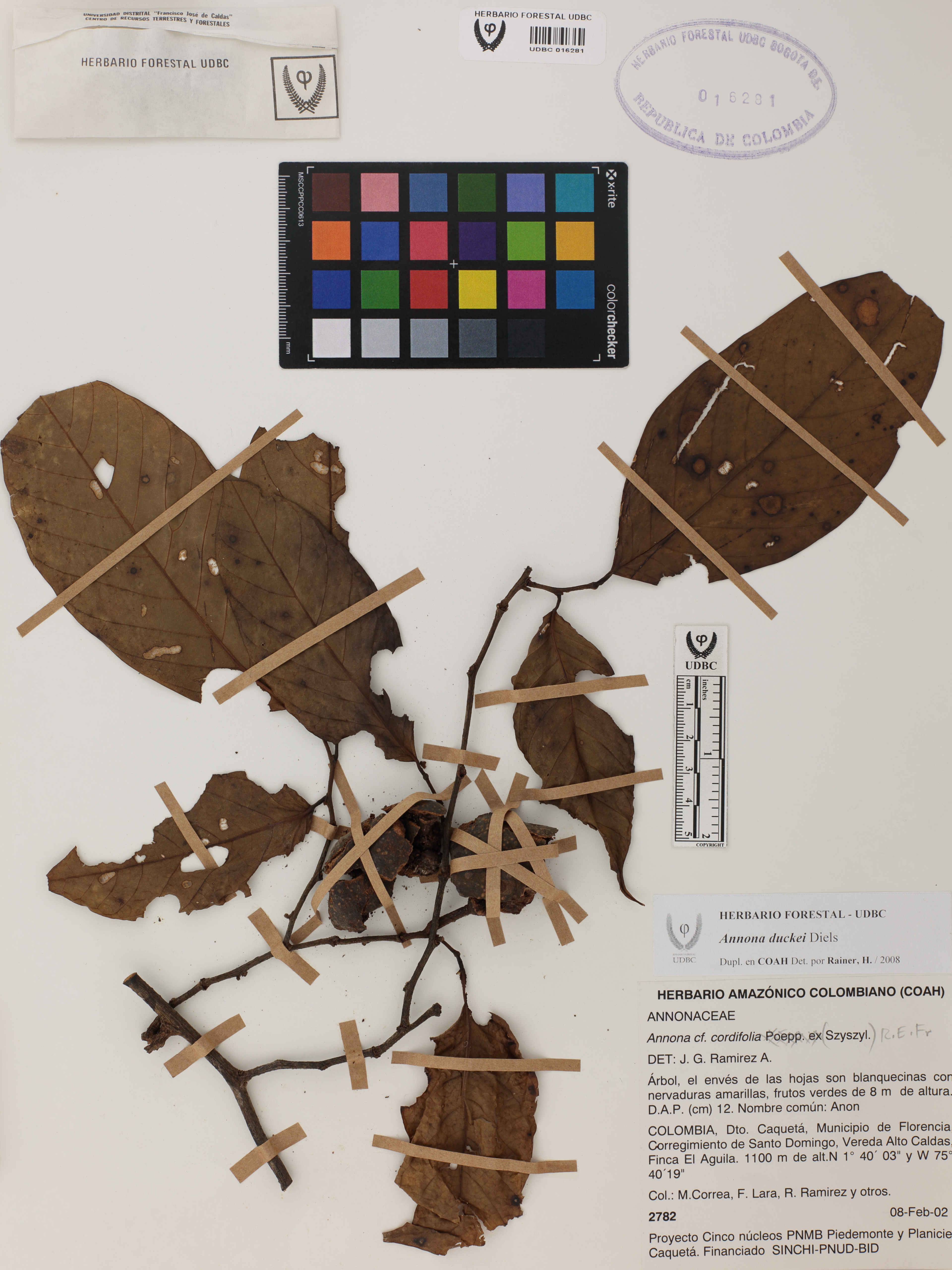 Fotografía del ejemplar Correa, M. 2782, determinado como Annona duckei en el año 2008