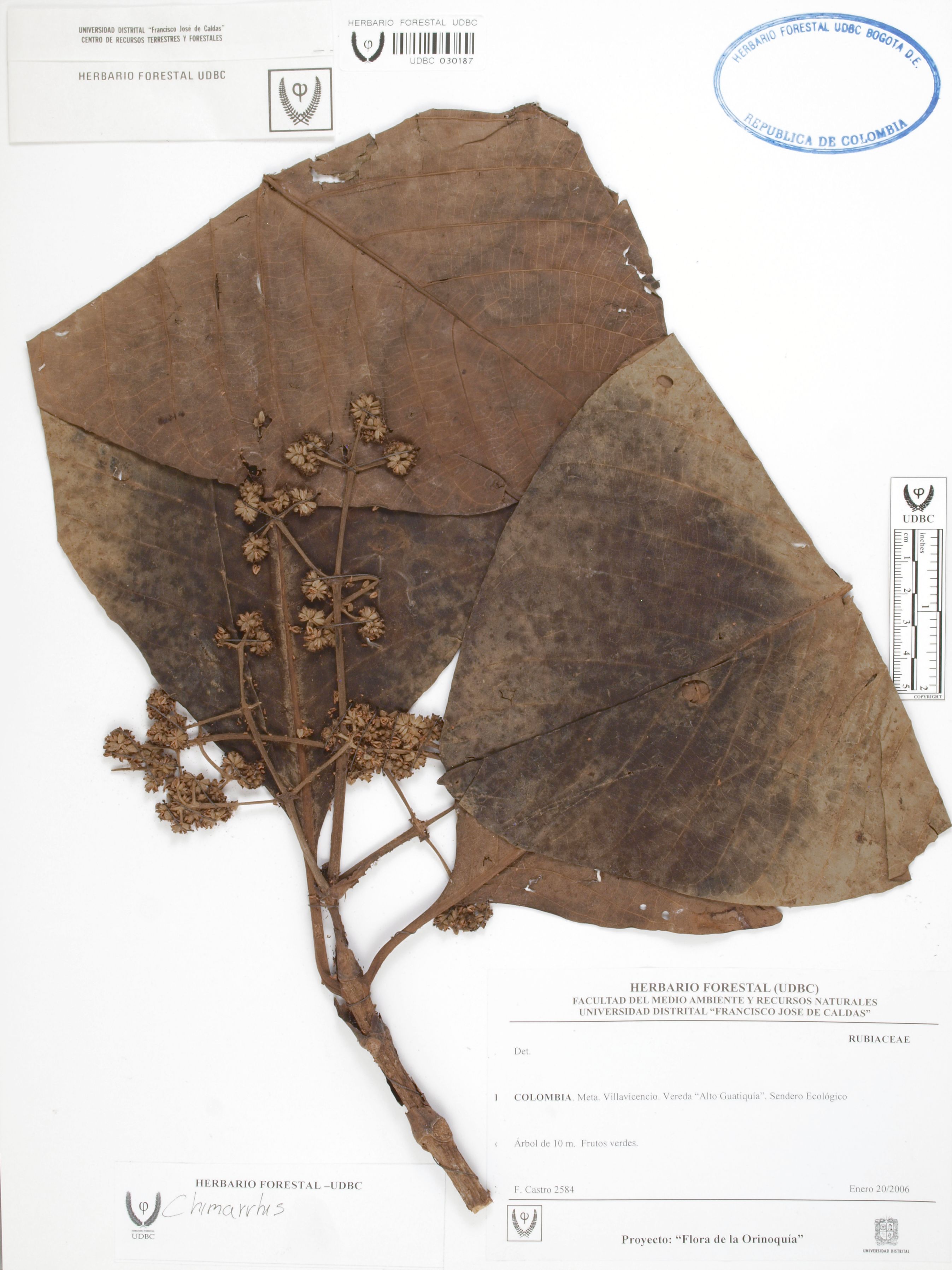 Fotografía del ejemplar Castro, F. 2584, determinado como Chimarrhis sp.