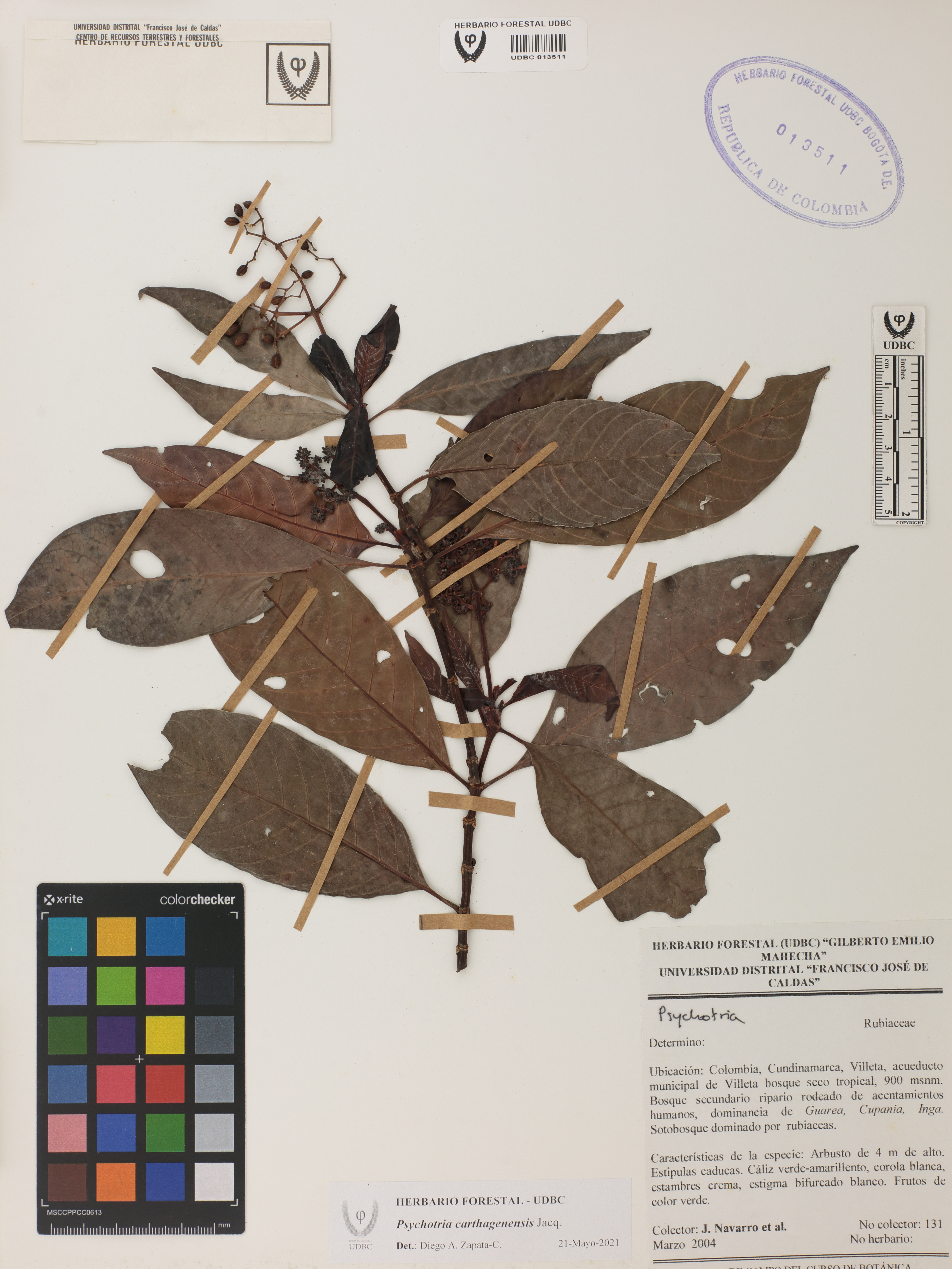 Fotografía del ejemplar Navarro, J. 131, determinado como Psychotria carthagenensis en el año 2021