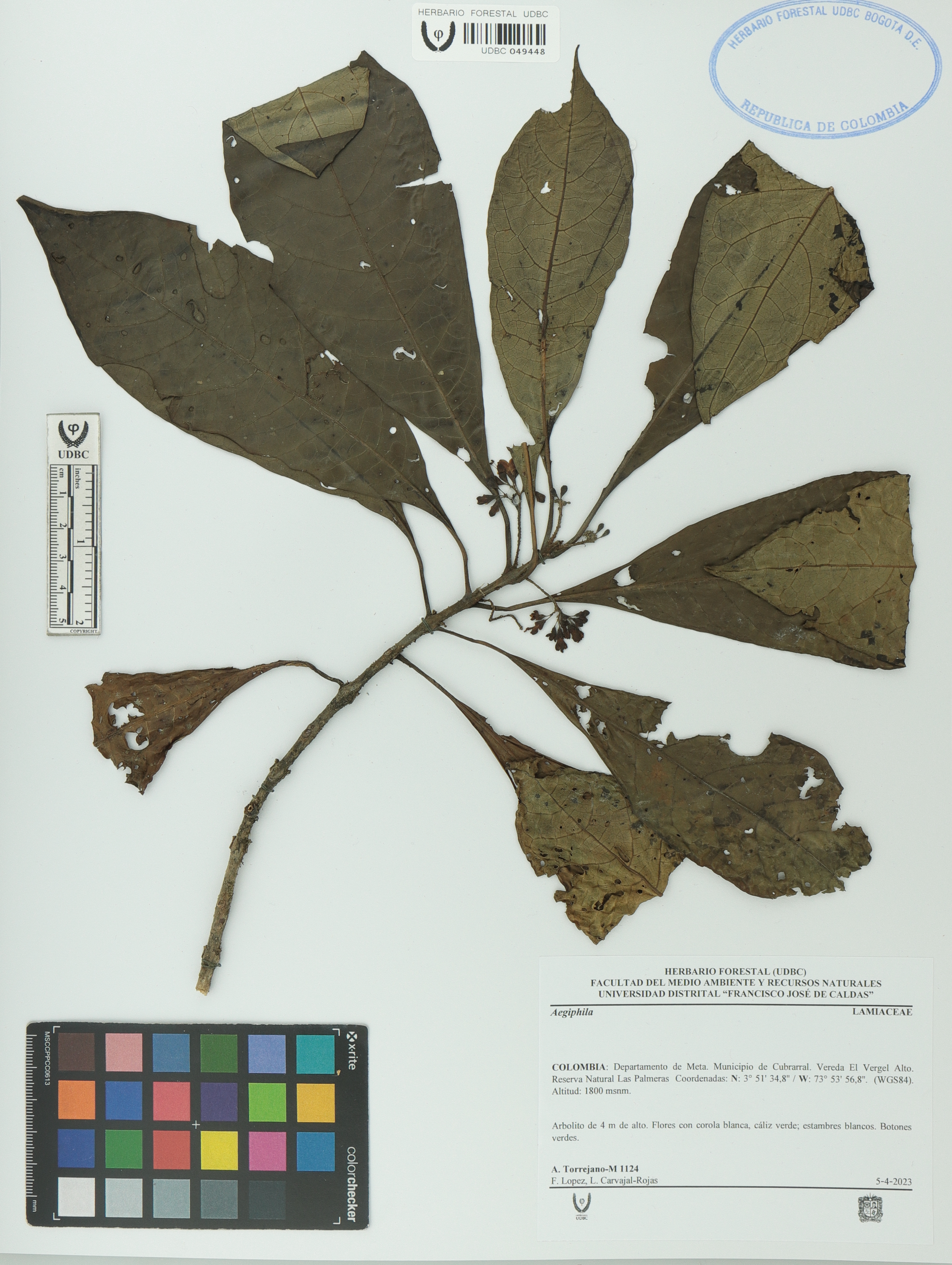 Fotografía del ejemplar Torrejano, A. 1124, determinado como Aegiphila sp. en el año 2023