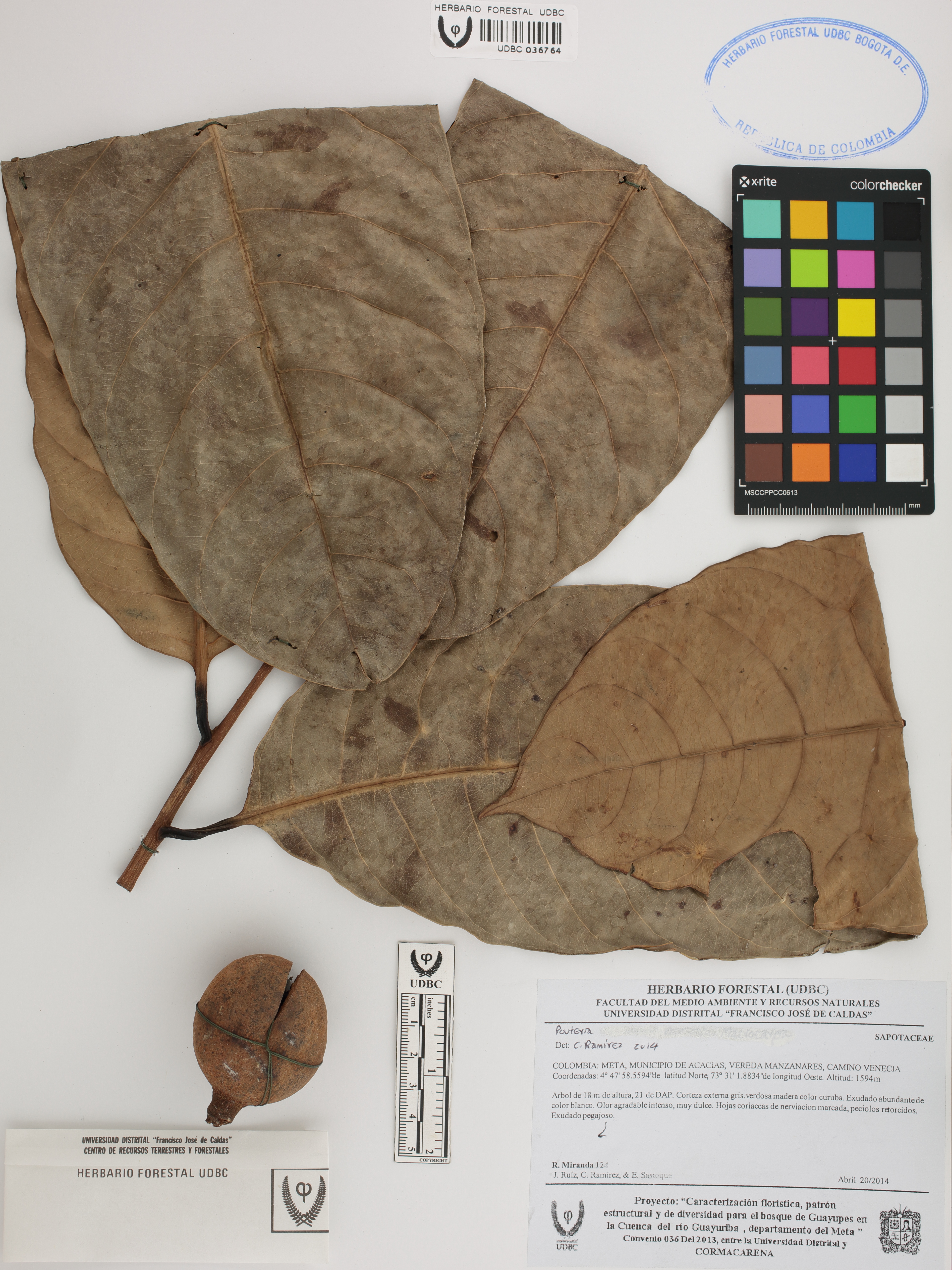 Fotografía del ejemplar Miranda, R. 124, determinado como Pouteria sp. en el año 2014