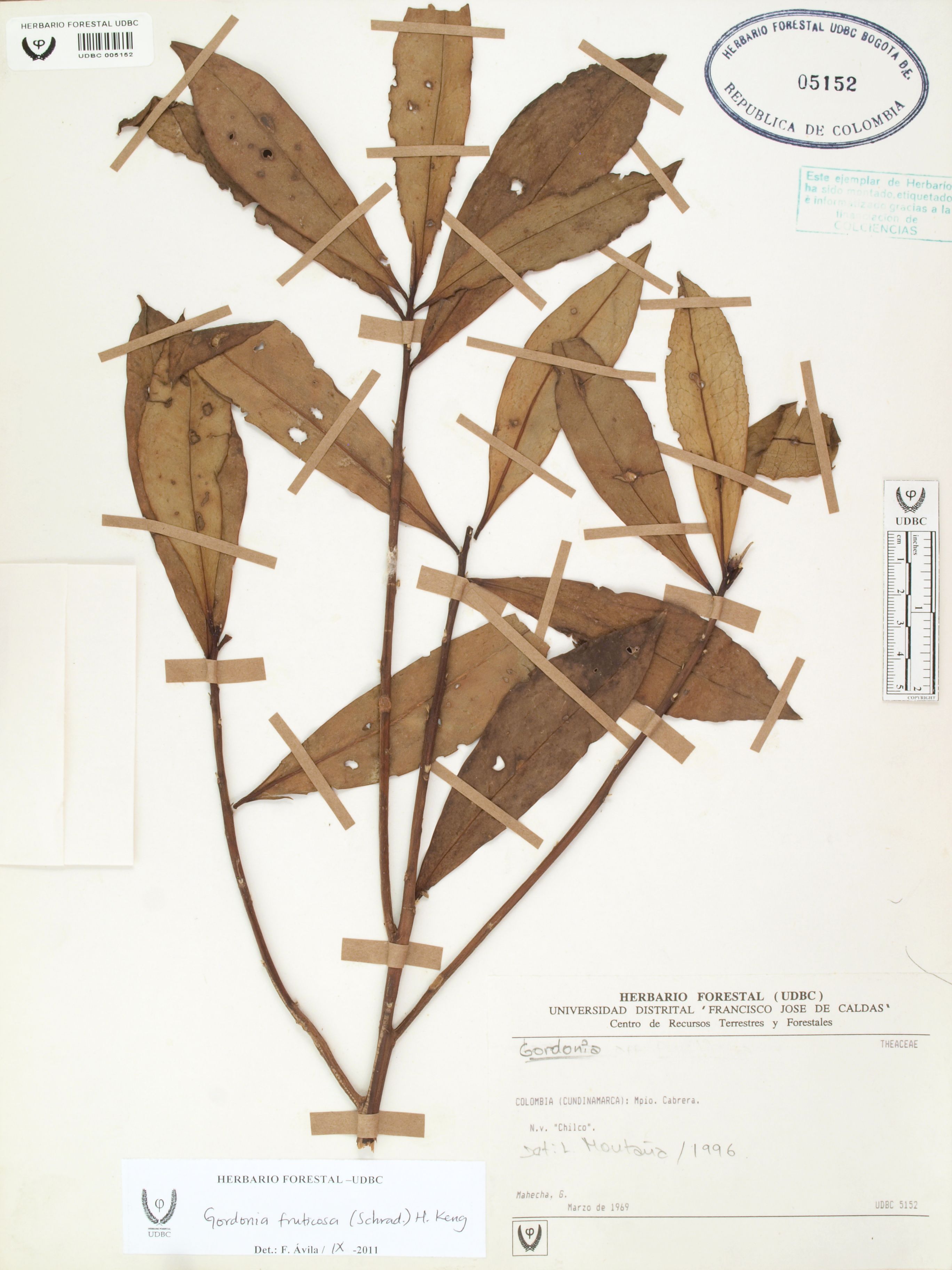 Fotografía del ejemplar Mahecha, G., determinado como Gordonia fruticosa en el año 2011