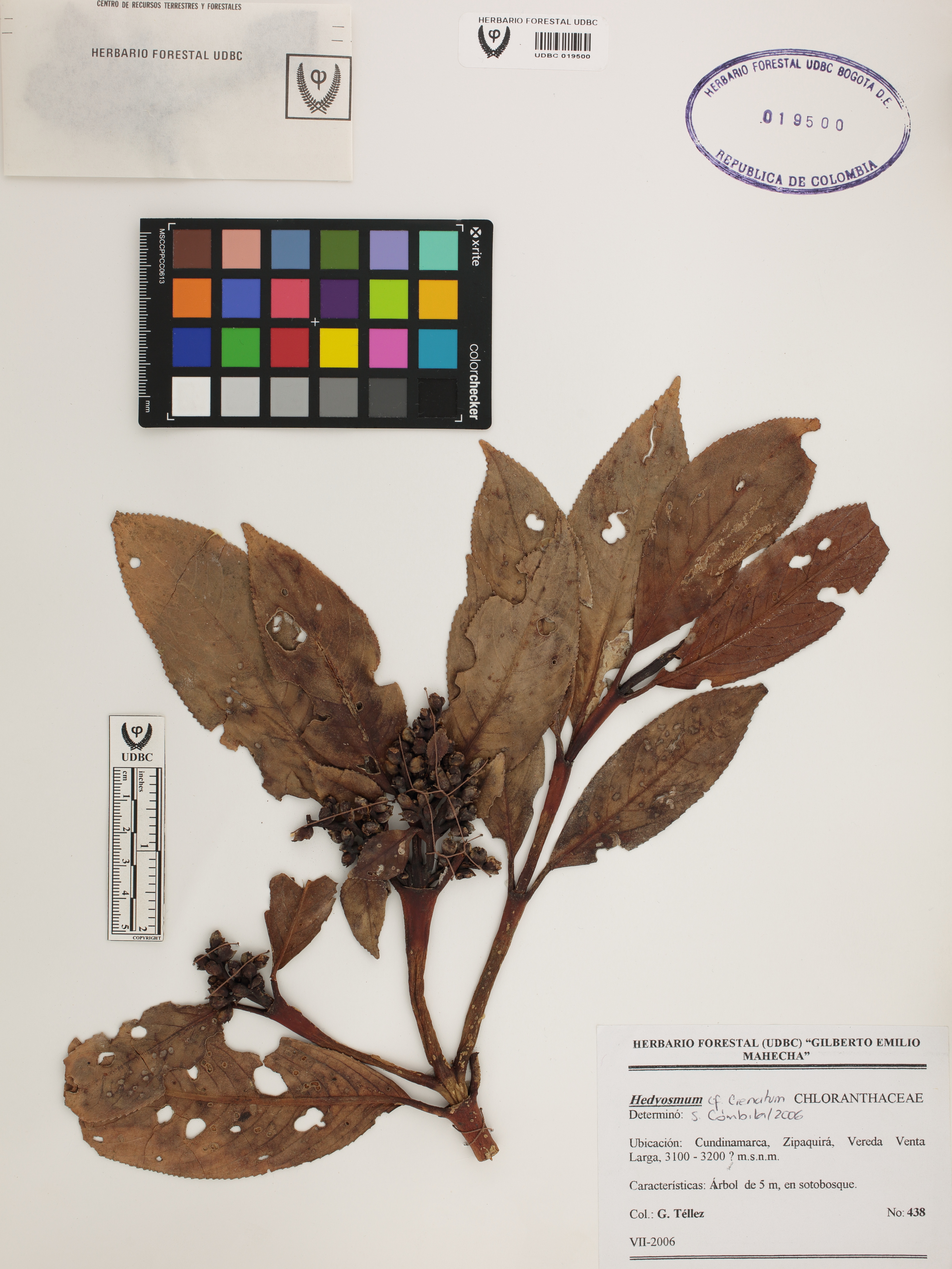 Fotografía del ejemplar Téllez, G. 438, determinado como Hedyosmum crenatum en el año 2006
