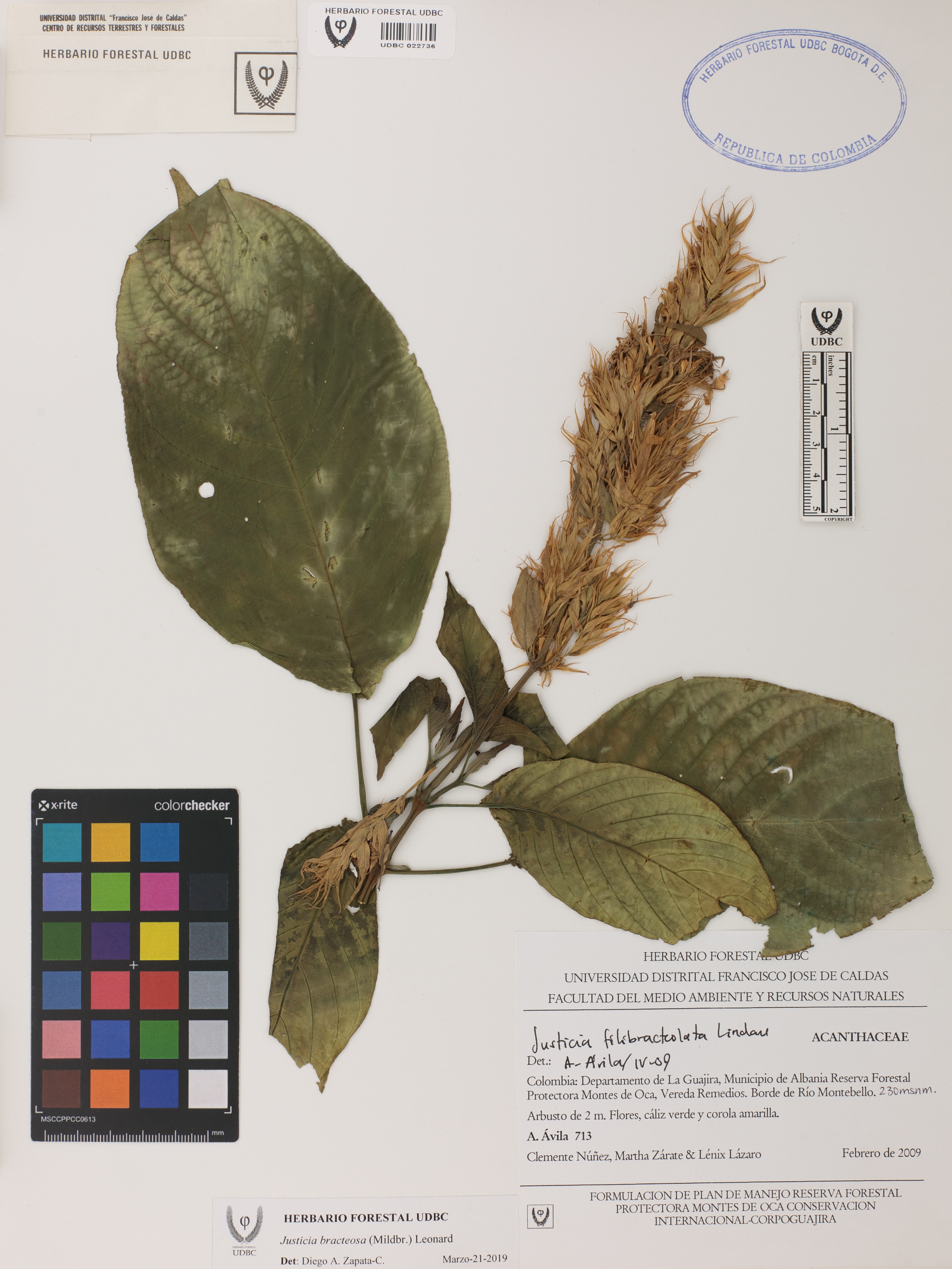 Fotografía del ejemplar Ávila, F. 713, determinado como Justicia bracteosa en el año 2019