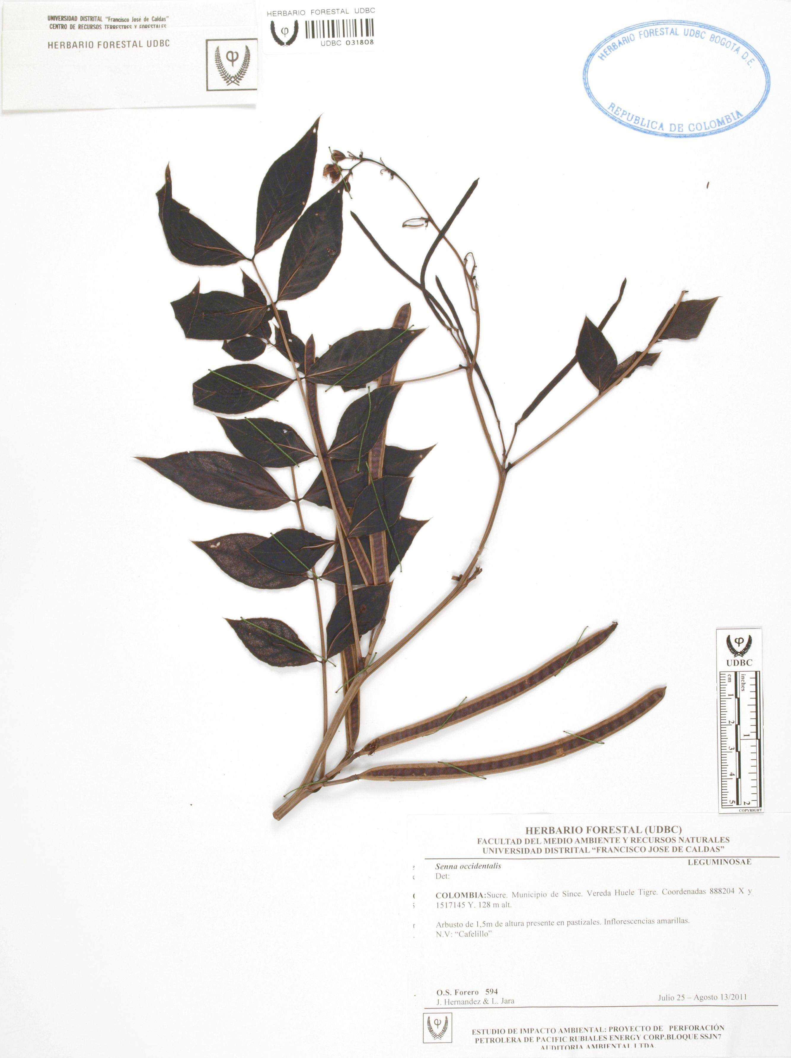 Fotografía del ejemplar Forero, O. 594, determinado como Senna occidentalis
