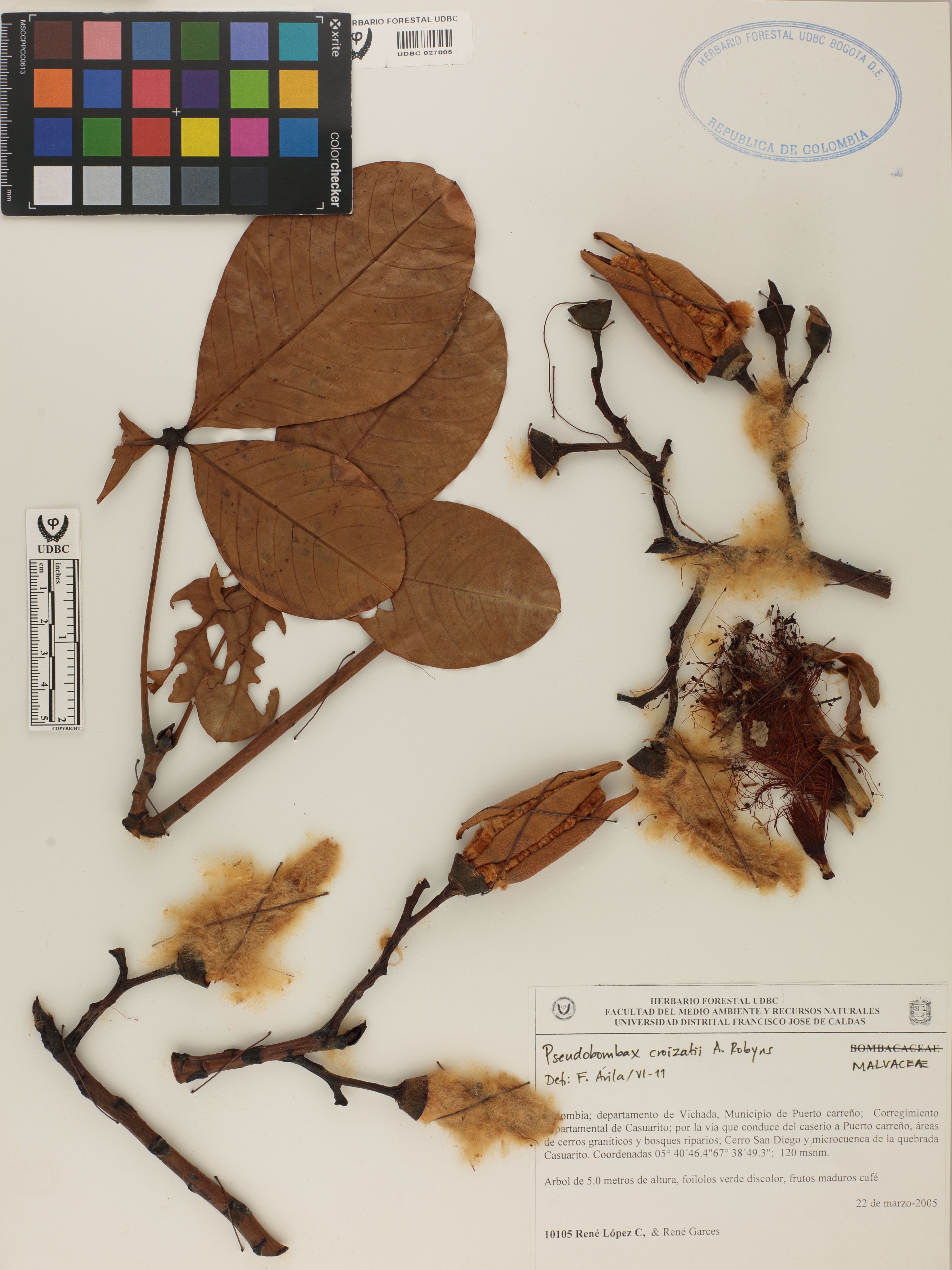 Fotografía del ejemplar López, R. 10105, determinado como Pseudobombax croizatii en el año 2011
