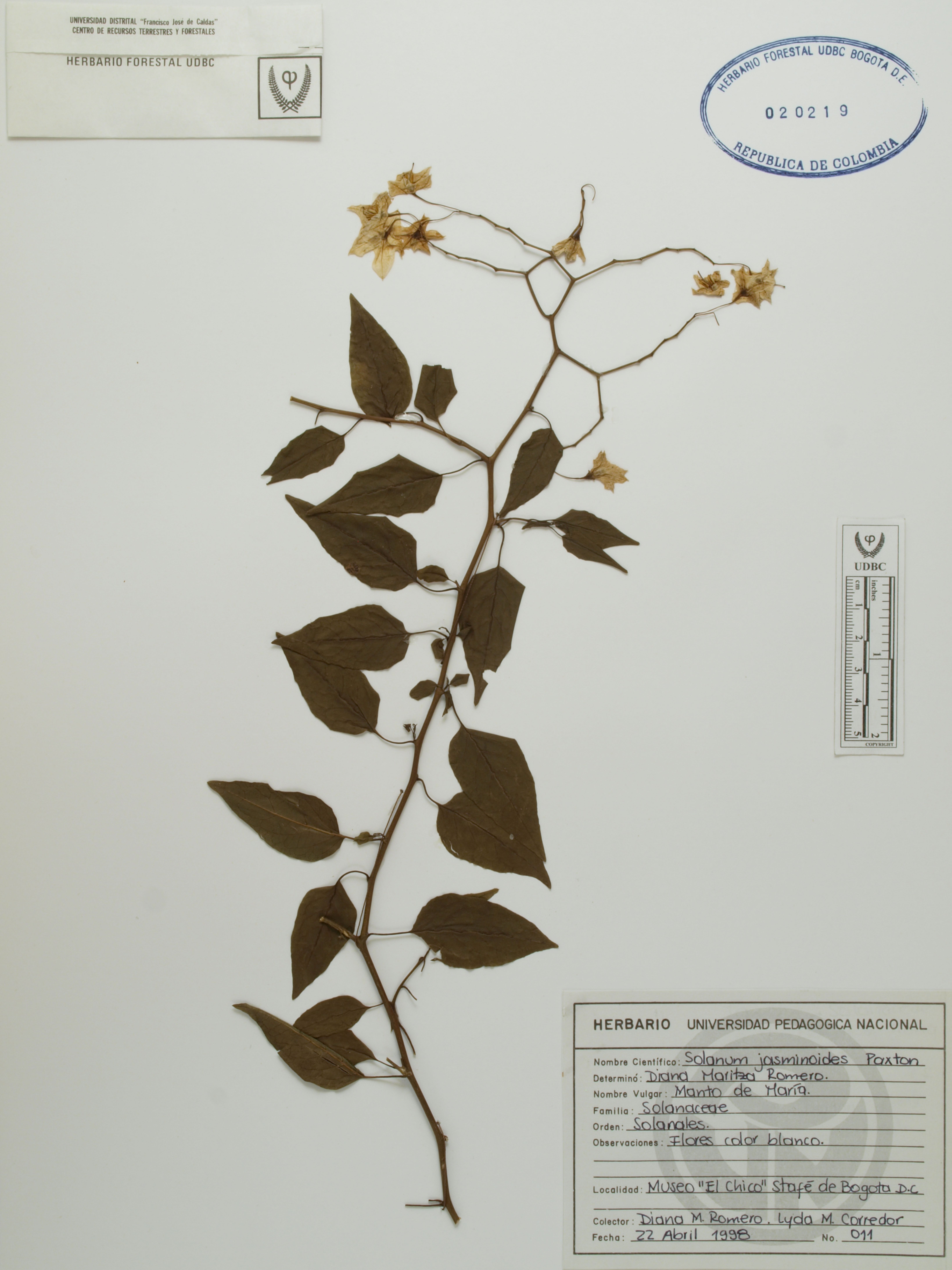 | dc.description | Fotografía del ejemplar Romero, D. 11, determinado como Solanum laxum en el año 2009 | |